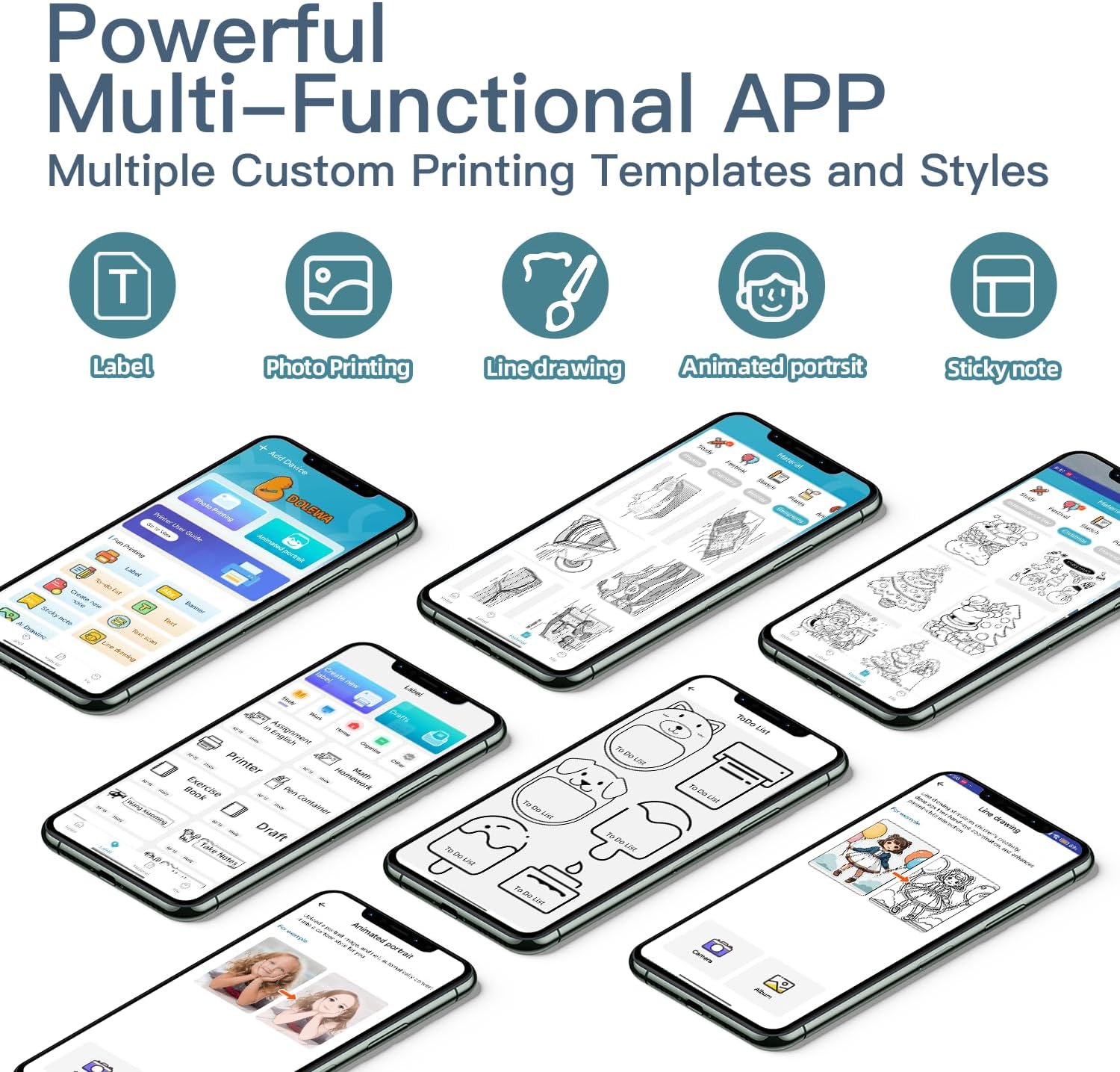 - EXCLUSIVE BRAND APP: The bluetooth inkless printer with a powerful App, supports a wide variety of styles, fonts, sizes, and patterns, allowing you to create unique, creative labels tailored to your needs. Easily edit, adjust, and personalize your prints to your liking, adding more fun to your work and life. The fonts, languages, video tutorials of the DOLEWA APP will be updated regularly every month