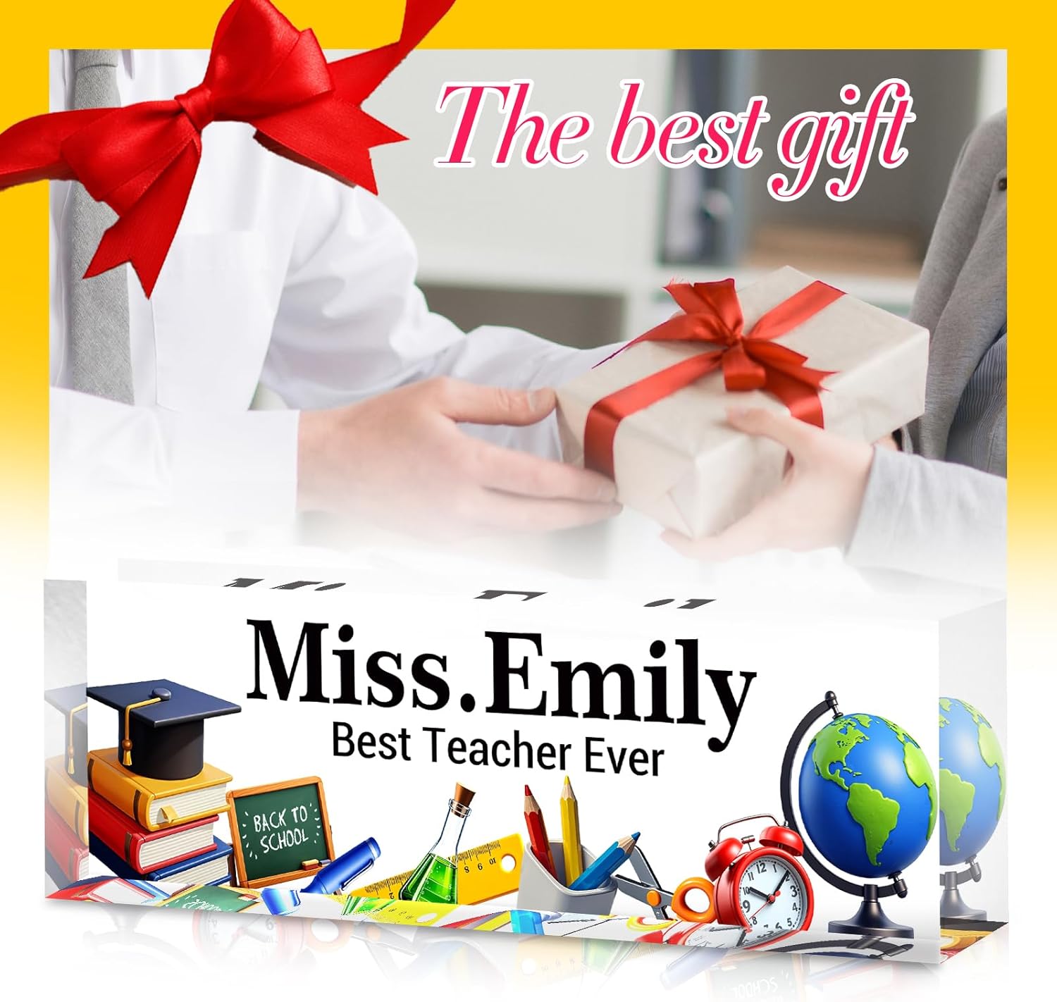 Personalized Name Plate for Desk - Custom Engraved Name Plates for Teacher -Teachers Day Gifts- Best Teacher Ever Teacher Appreciation Gifts- Acrylic Office Decor