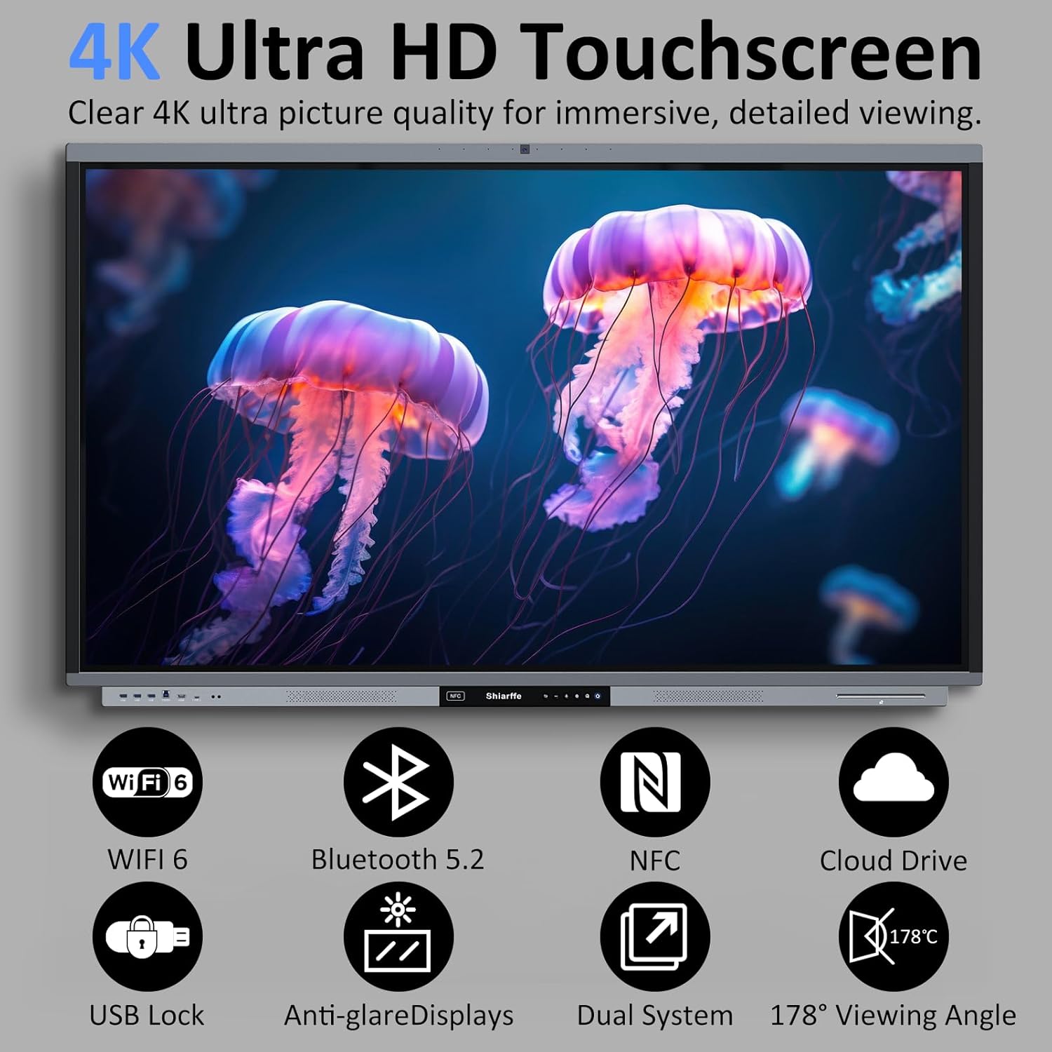 Shiarffe R9 4K 75" Smart Board, Flagship CPU 16 GB RAM + 256 GB ROM, Compatible with Google Play Store, OTA Software Updates, Smartboard for Classroom Office Hybrid Work