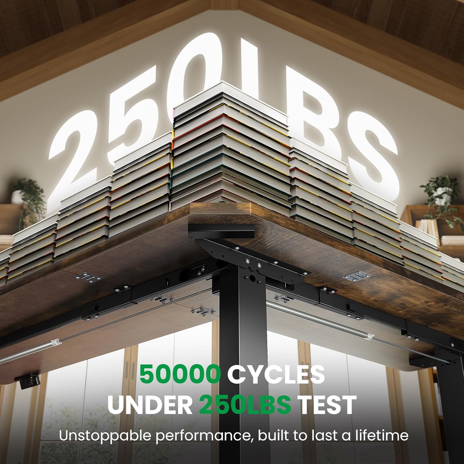 - ăSolid and DurableăThe L-shaped electric standing desk features a durable and wear-resistant tabletop paired with three equal-length legs . During a 250LBs load-bearing test, the motor can smoothly perform 50,000 lifting and lowering cycles. SIAGO L-shaped standing desk â Redefining the lifecycle of office furniture through industrial-grade durability