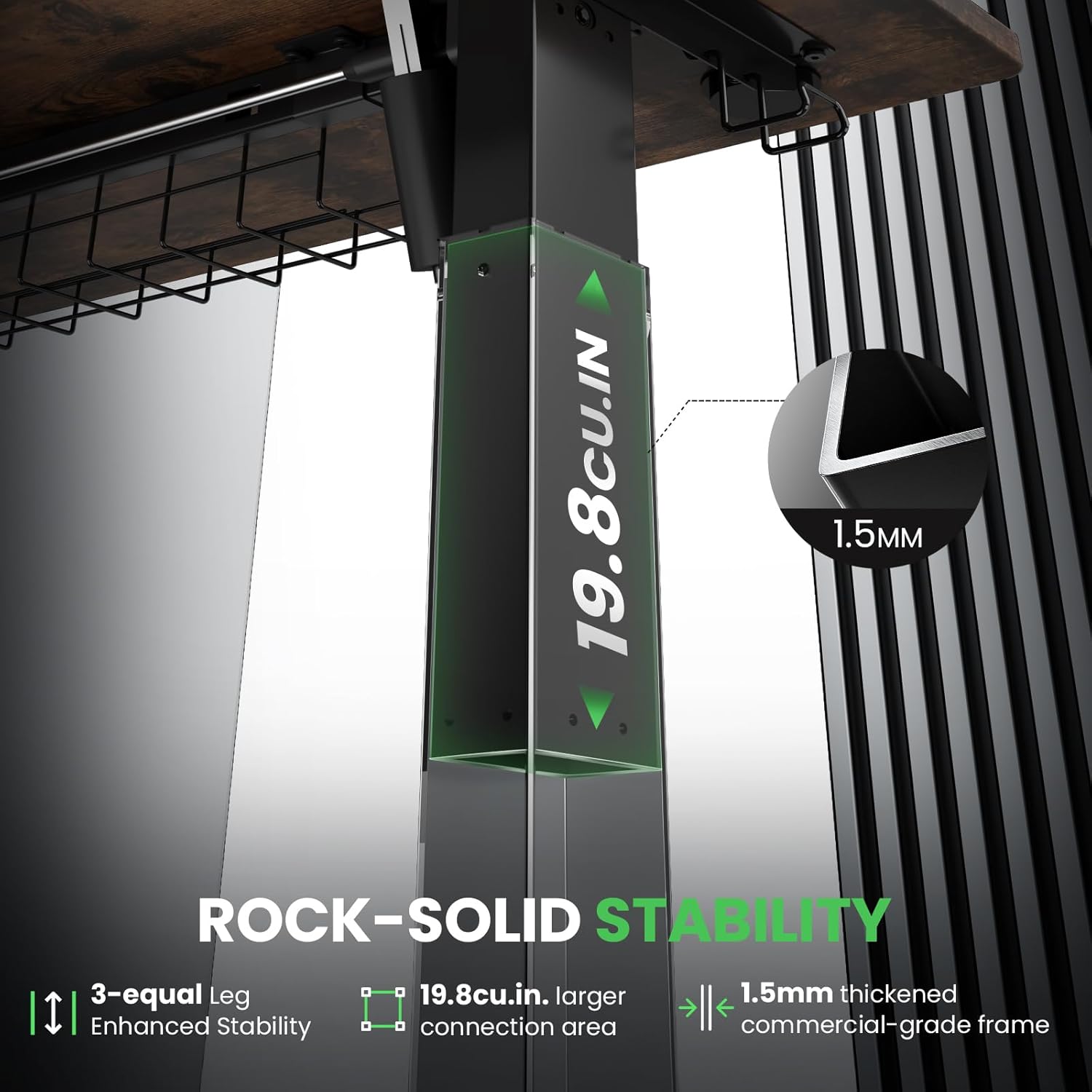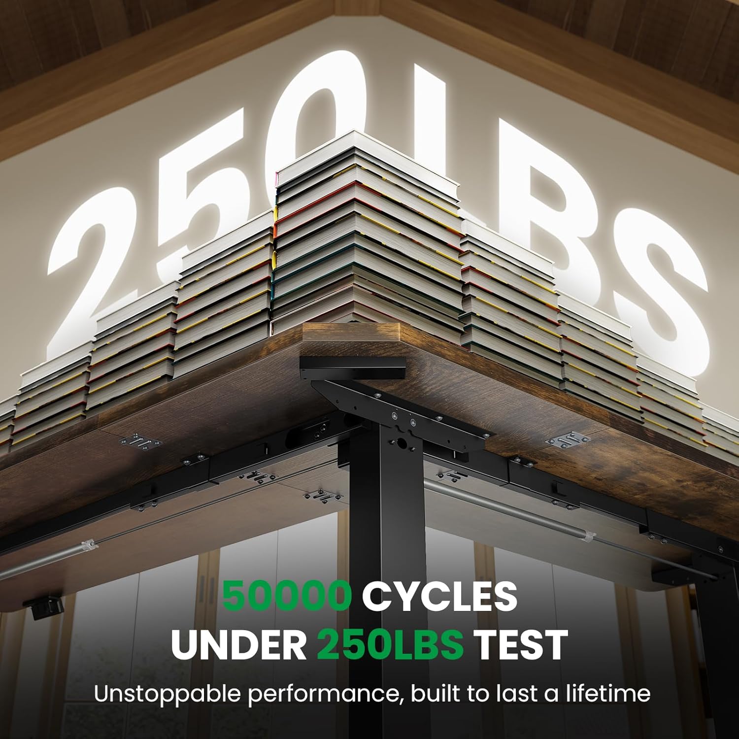 - ăSolid and DurableăThe L-shaped electric standing desk features a durable and wear-resistant tabletop paired with three equal-length legs . During a 250LBs load-bearing test, the motor can smoothly perform 50,000 lifting and lowering cycles. SIAGO L-shaped standing desk â Redefining the lifecycle of office furniture through industrial-grade durability