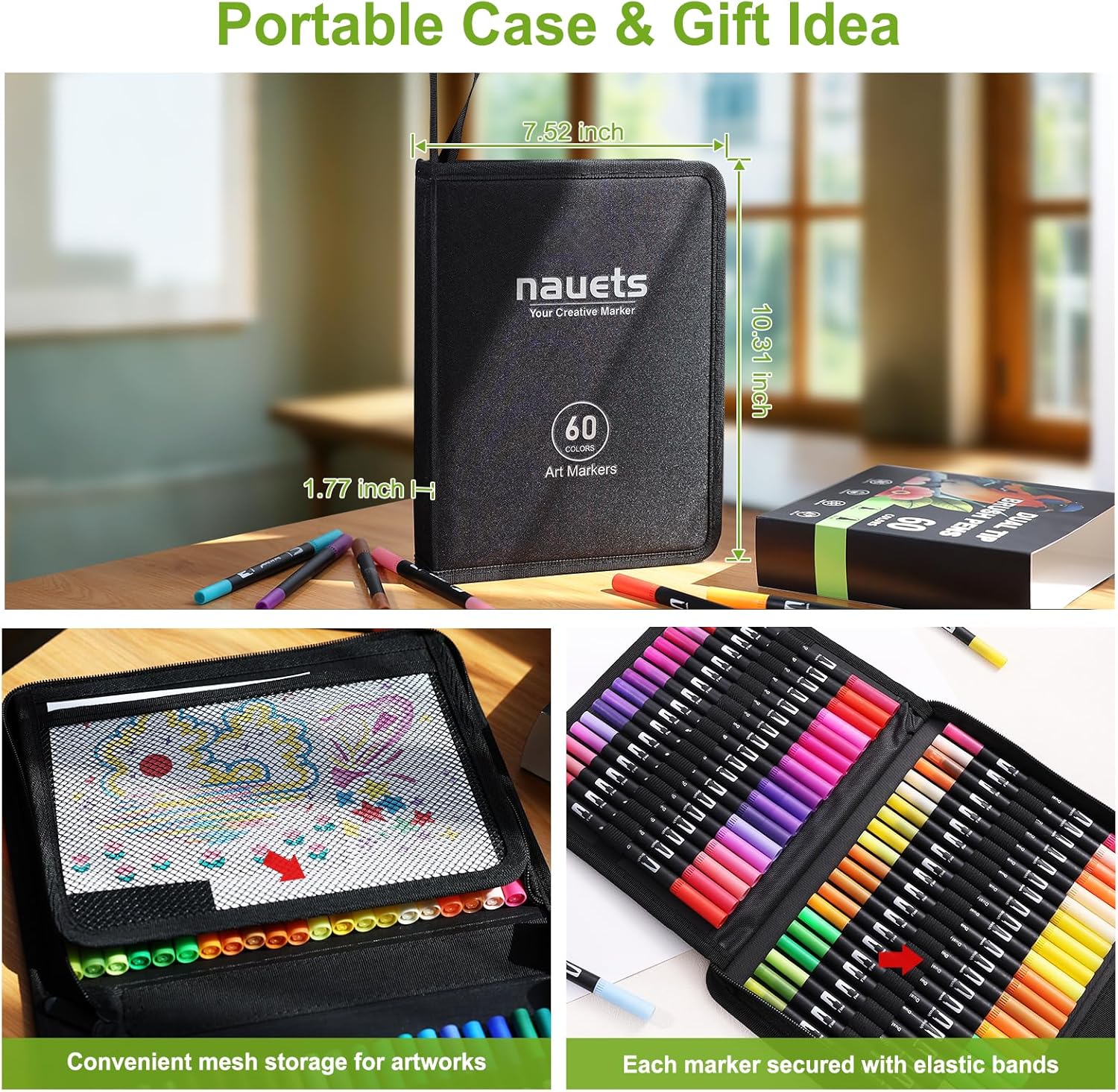 - 🎨 Packing List: 1 x Portable Case, 60 x Coloring Markers, 3 x Bonus Brush Tips & 3 x Bonus Fineliner Tips. The Marker Pens set comes in a well-organized case, making it easy to select and store your markers. The coloring markers are packaged in a durable and attractive case, offering enhanced protection for the pens during transportation. The built-in elastic cord secures the paint pens in place, making them convenient to carry, the outer zipper with stitching is easy to open and close. If you have any issues with the products or orders, please feel free to contact us.