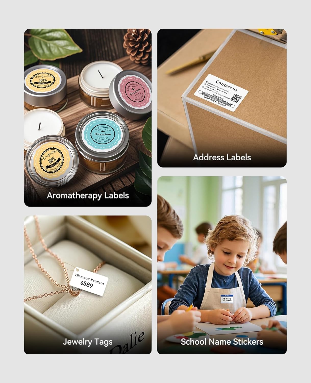 - Multi-scene Use: It's widely used in small businesses, coffee shops, bakeries, retail, the food industry, jewelry, etc. for price labels, addresses, jars, DIY, barcodes, dates, ingredients, and product labeling. It is for various labeling needs and brings convenience to work and life