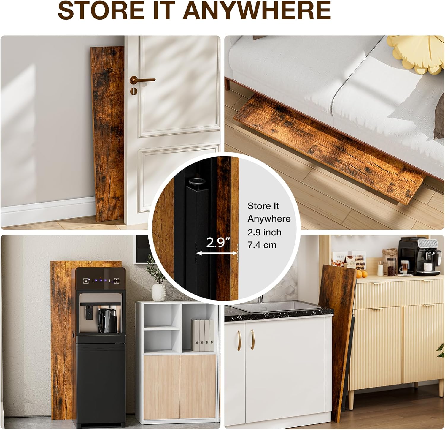 - πππ’π π£πππ§ ππ‘π πππ¦π¬ π§π’ π¦π§π’π₯π β When folded, this mini desk measures just 43.3" L x 19.6" W x 2.9" H. The small folding table design allows it to fit seamlessly behind doors, under beds, beside fridges, or in any other tight space, making it a great small computer desk for small spaces while keeping your room organized.