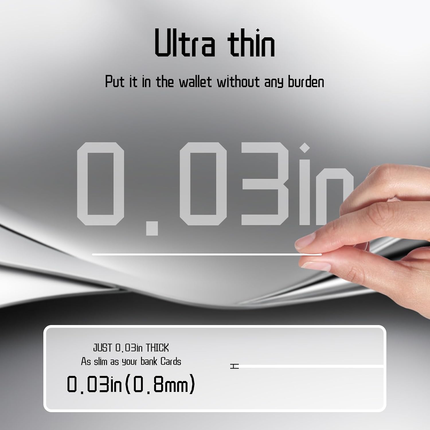 - Slim and Convenient Design:The card is ultra-thin and lightweight(0.3 inch), seamlessly fitting into any wallet or cardholder without adding bulk, ensuring effortless everyday carry and peace of mind.