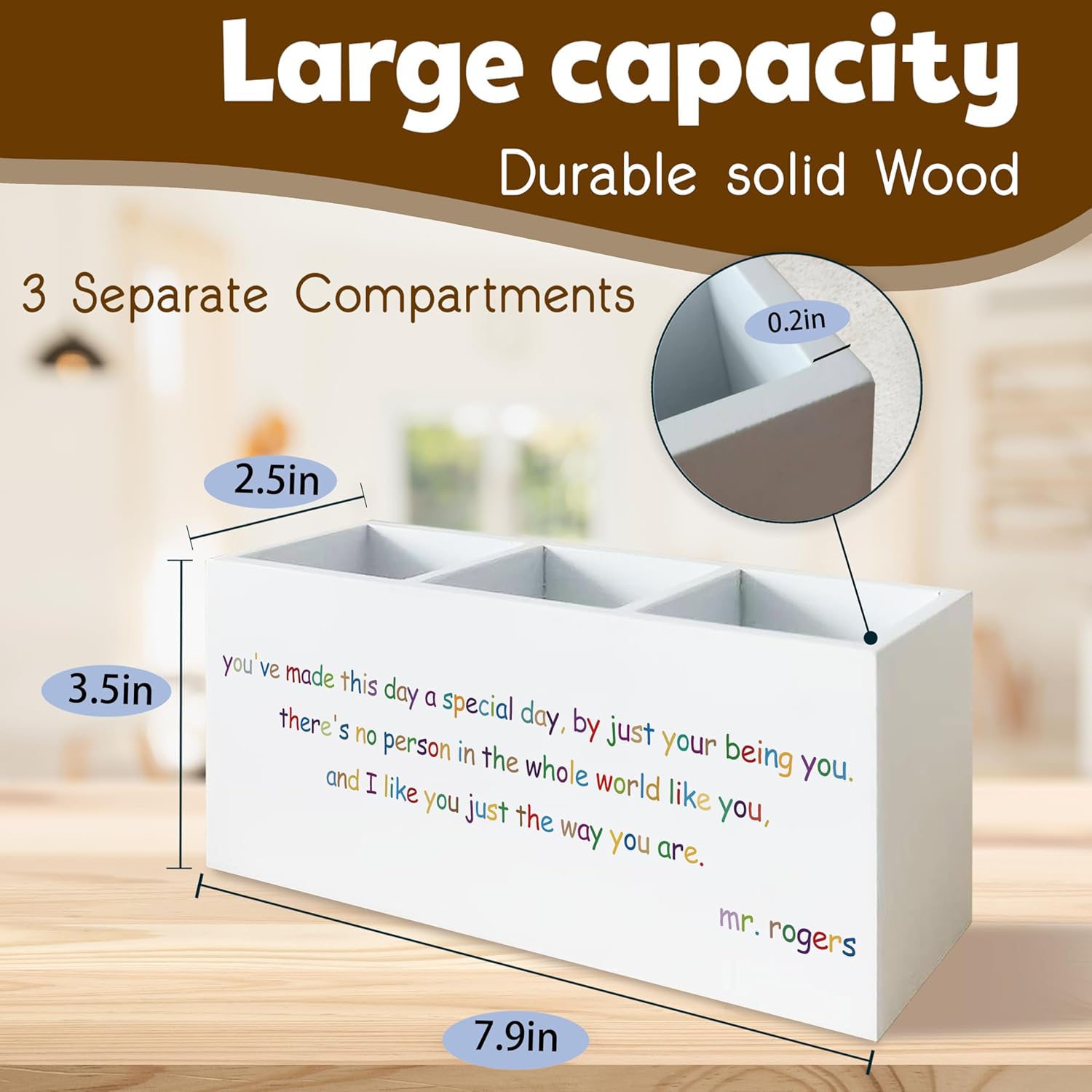 Mr.Rogers Inspirational Quotes Pen Holder for Desk, Motivational Gifts for Women Men Coworkers, Positive Gifts Wooden Pen Pencil Holder Organizer for Office Desk Accessories