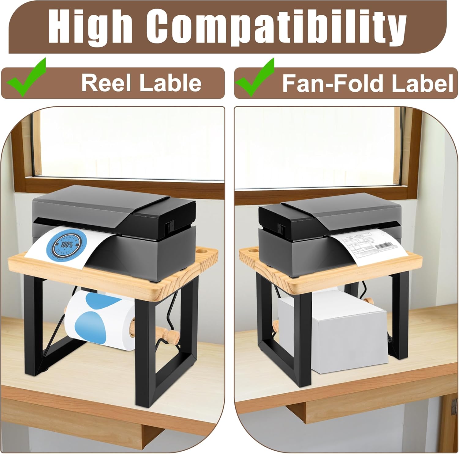 Label Holder for Rolls and Fan-Fold Labels, Thermal Printers Desktop Label Dispenser Stand, Durable Wooden Label Holder Organizer for Home, Office, Warehouse