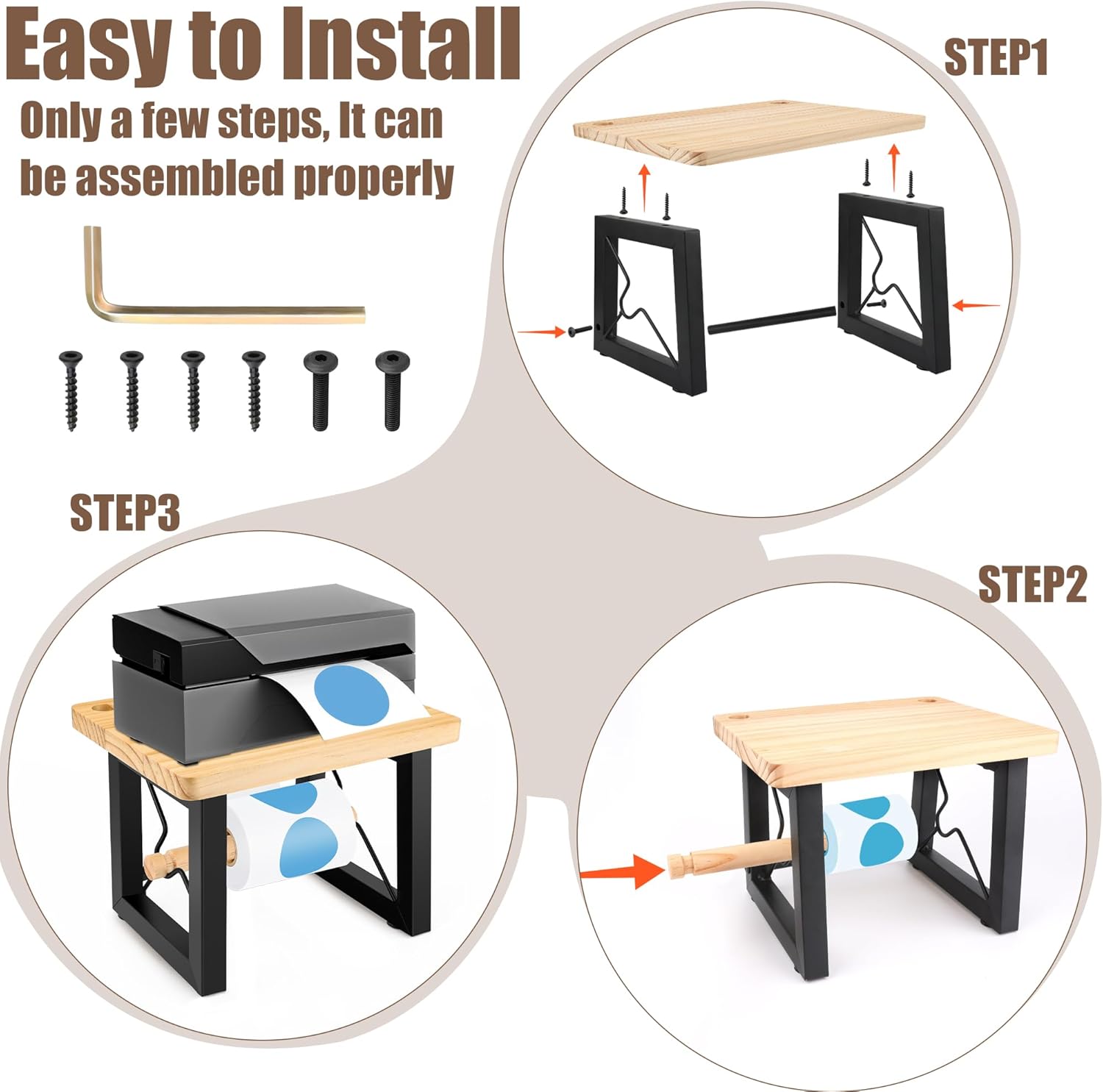 - ๐๐๐ฌ๐ฒ ๐ญ๐จ ๐๐ง๐ฌ๐ญ๐๐ฅ๐ฅ:Only 6 screws (all included) are needed to easily assemble the label holder for thermal printer. The intuitive 4-part design can be quickly pieced together, so you can organize it immediately.