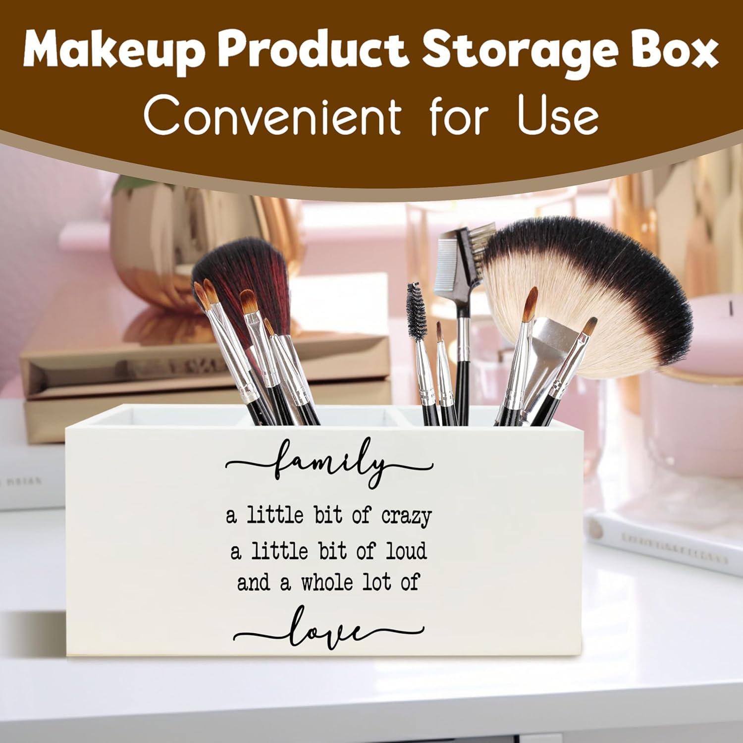 Family Signs Wooden Pen Holder for Home Decor Farmhouse Desk Shelf Decorations for Shelf Decorations, Family a Little Bit of Crazy Rustic Desk Decor for Home Office Table Pencil Holder