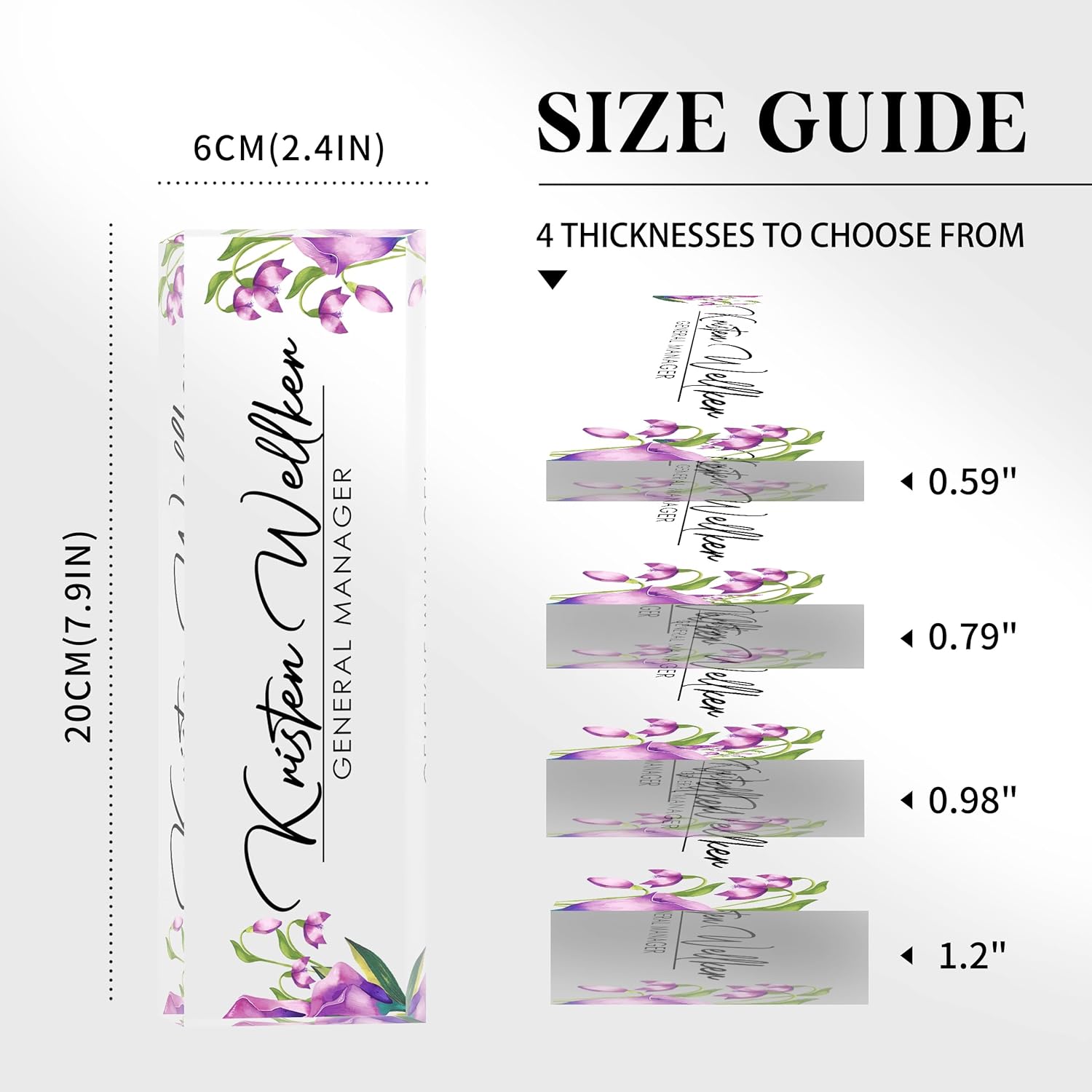 - 🍀 High Quality Acrylic - The name plate is made of high-quality transparent crystal acrylic blocks and printed on the back of the name plate using UV HD printing technology. The text and beautiful floral patterns present a 3D stereoscopic effect. The color is bright and will not fade, and can be used for a long time.