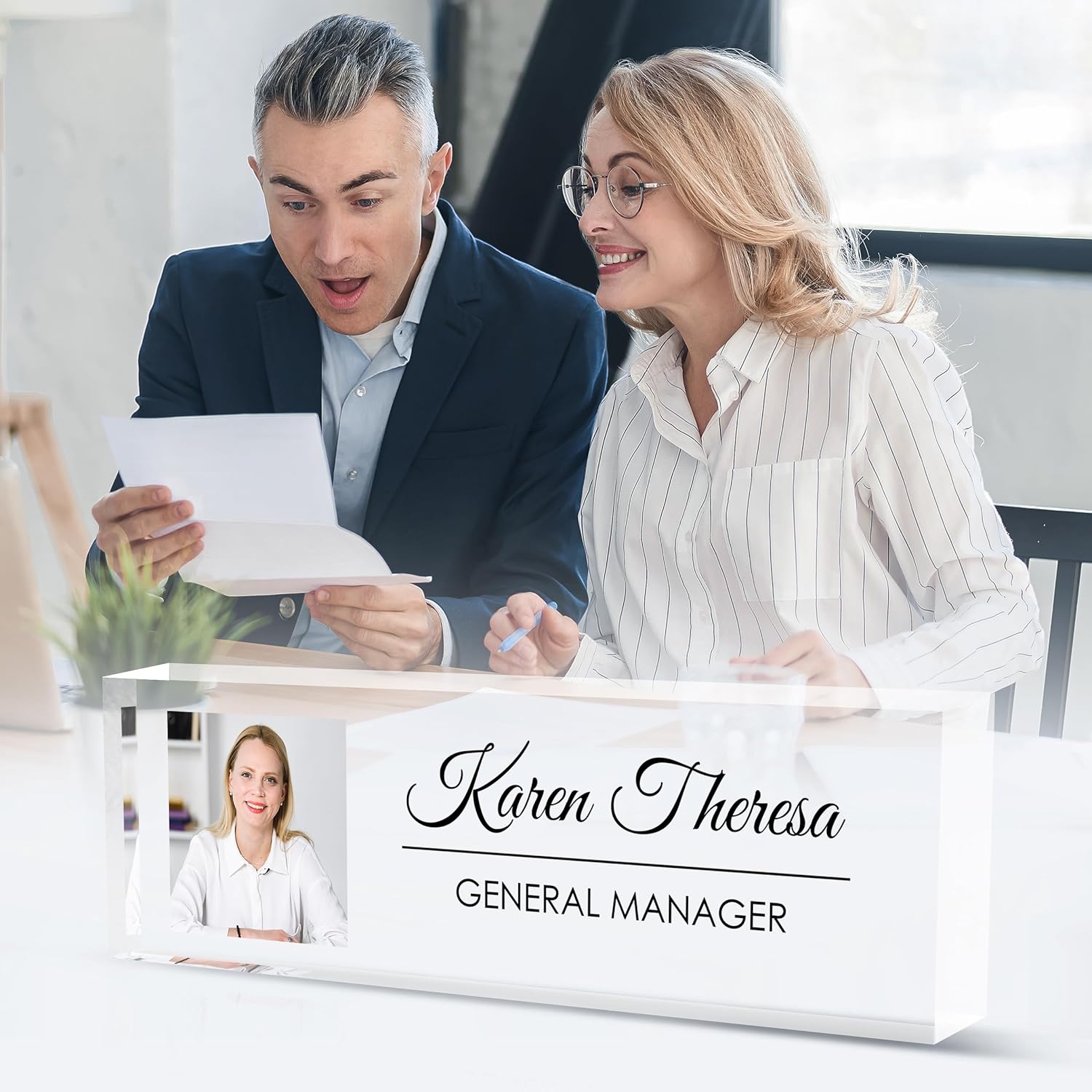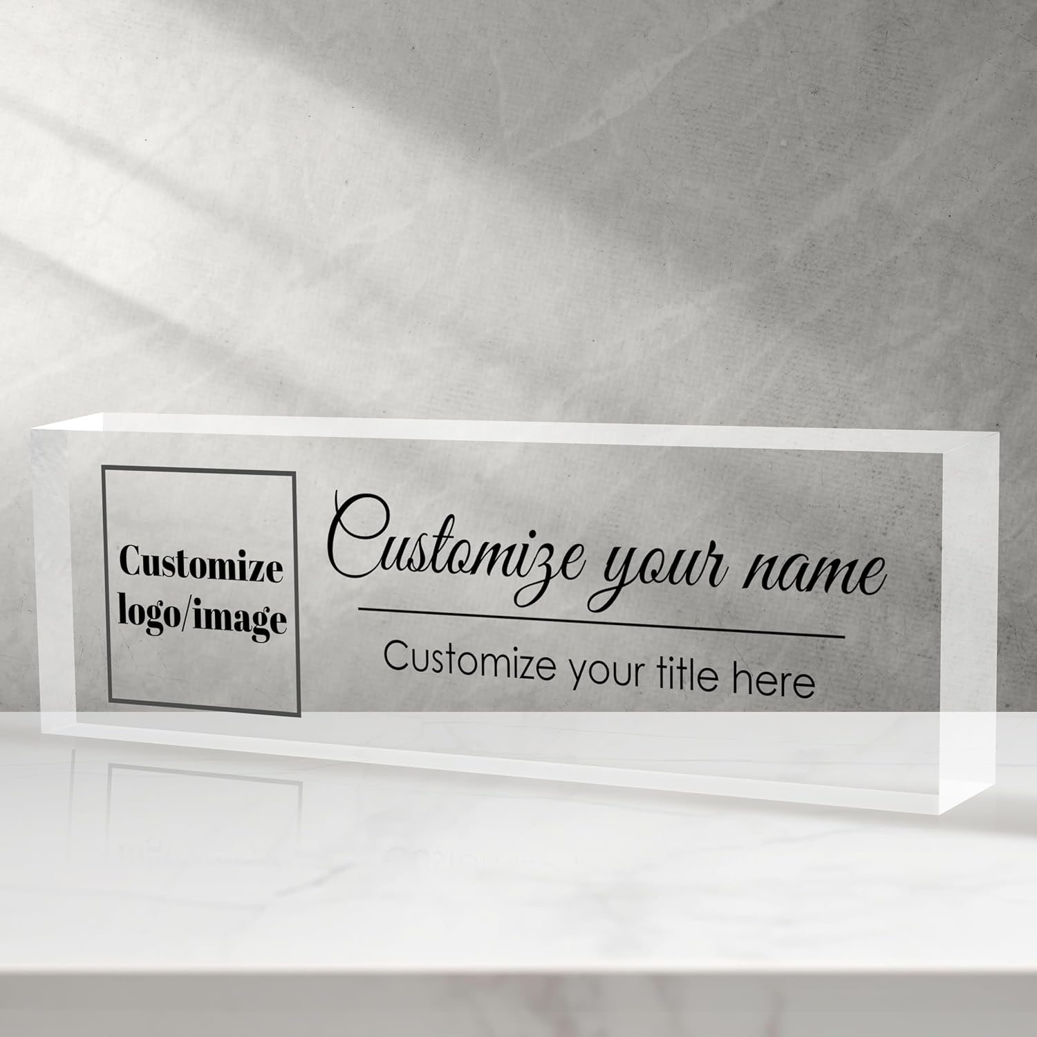 Custom Office Name Plate for Desk, Desk Name Plate Personalized, Personalized Gifts for Women, Appreciation Gifts for Employee Coworkers Boss Teacher, Office Accessories (Logo/Image)