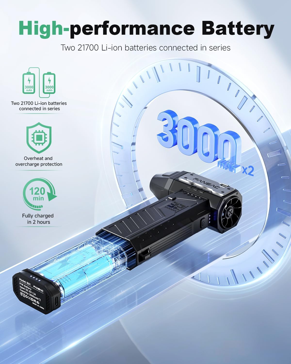 - INCLUDES 2× RECHARGEABLE PREMIUM BATTERY PACKS - Comes with two long-lasting lithium battery packs, allowing for extended use without interruption. Perfect for cleaning electronics, workstations, and hard-to-reach corners.