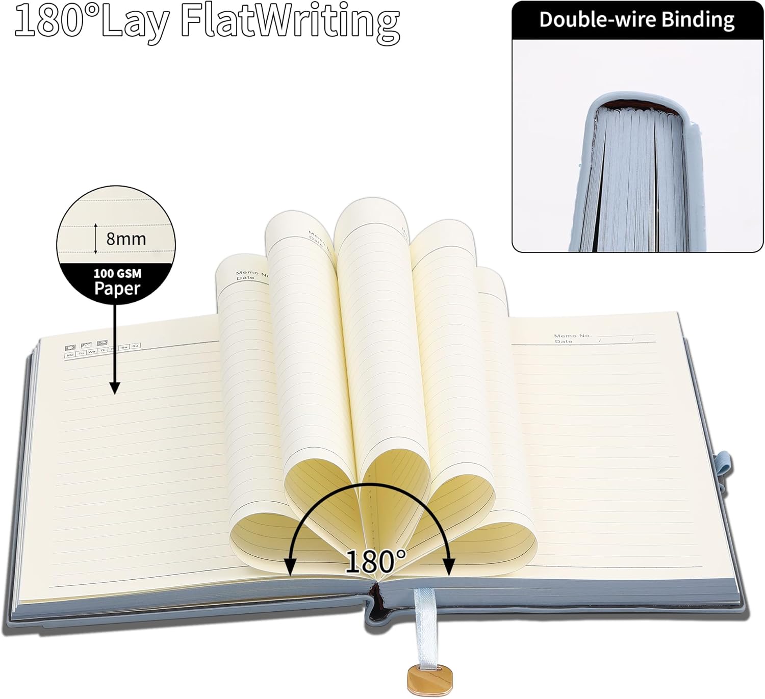 - Lay-Flat Design With Storage Pocket: The leather cover pocket is super handy for slipping in notes, receipts, cards or other small items. The stylish front pocket notebook is a useful companion for work meeting, travel notebook, notepad or to do list. 180° lay flat design makes it easy to write, whether you're right or left-handed
