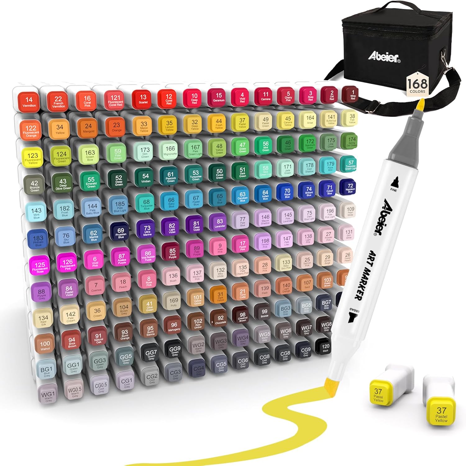 ABEIER Alcohol Markers, 168 Colors Dual Tip (Fine & Chisel) Art, Coloring Markers for Adults Kid, Ideal for Book Drawing Sketching Painting, Card Making, Includes 1 Colorless Blender