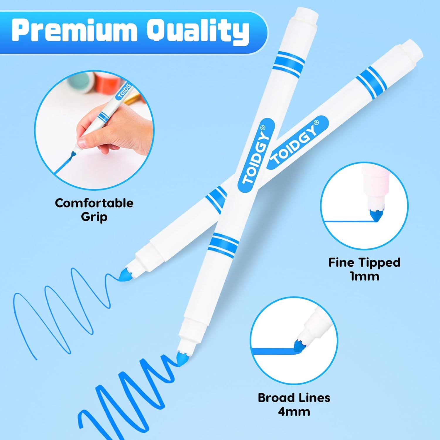 - Top-Quality And & Kid Safe: Enjoy a comfortable, smooth, bleed-free drawing experience with our premium water based markers. They're washable, so even if the color ends up on skin or clothes, it’s easy to clean. Plus, our thin markers for kids are non-toxic, acid-free, and odorless, ensuring the safety of kid, are perfect as classroom essentials, preschool supplies, also a great gift for boys girls kids ages 3 and up.