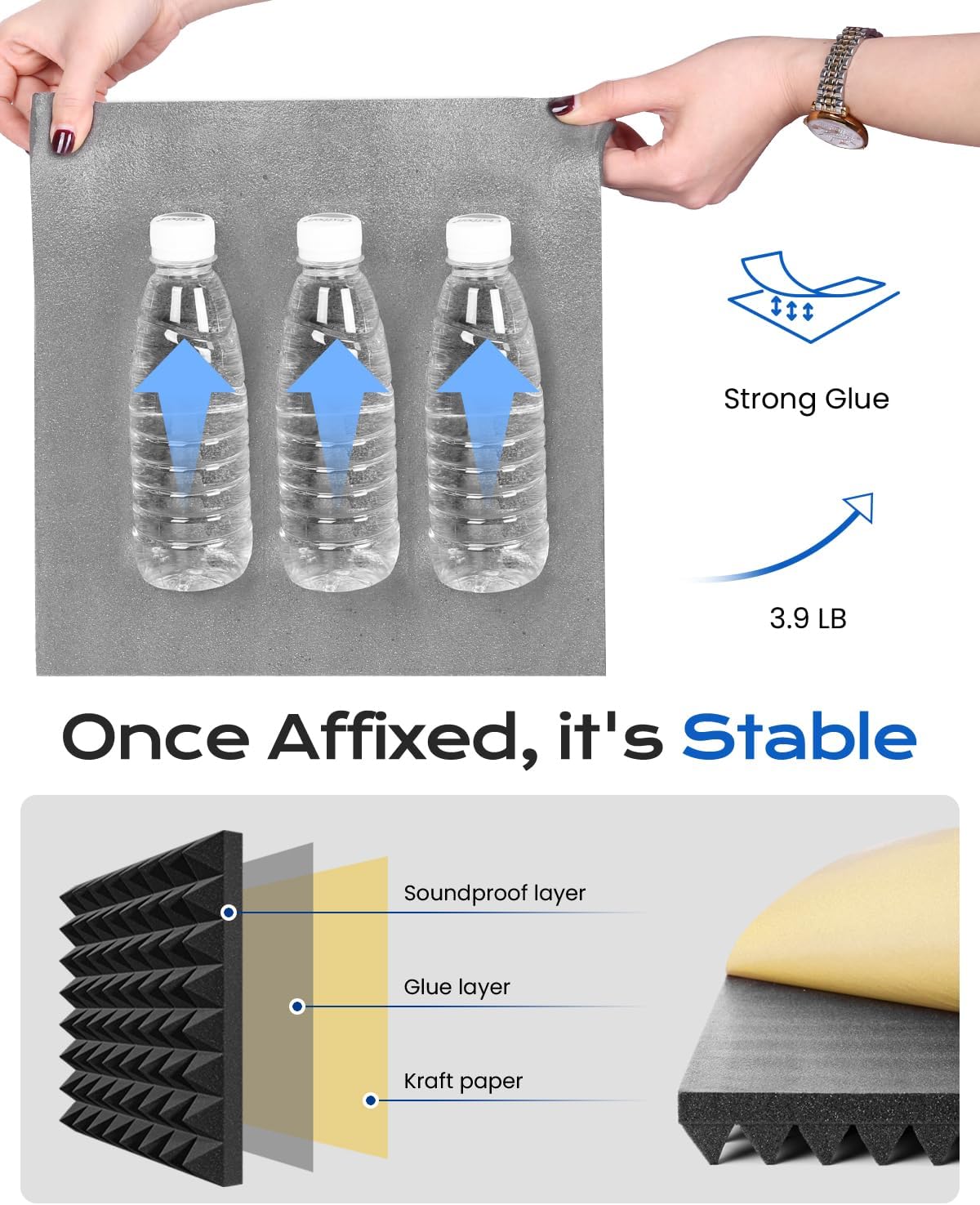 - 🚩【Convenient Self-Adhesive】For Sonicism acoustic panels, you don't need to buy additional spray glue and double-sided tape. Our soundproof wall panels comes with a self-adhesive layer, tear off the kraft paper on the back and stick it at will. The strong and long-lasting adhesive keeps the soundproof panels firmly fixed on the wall. Easy to install, don't worry about falling off.