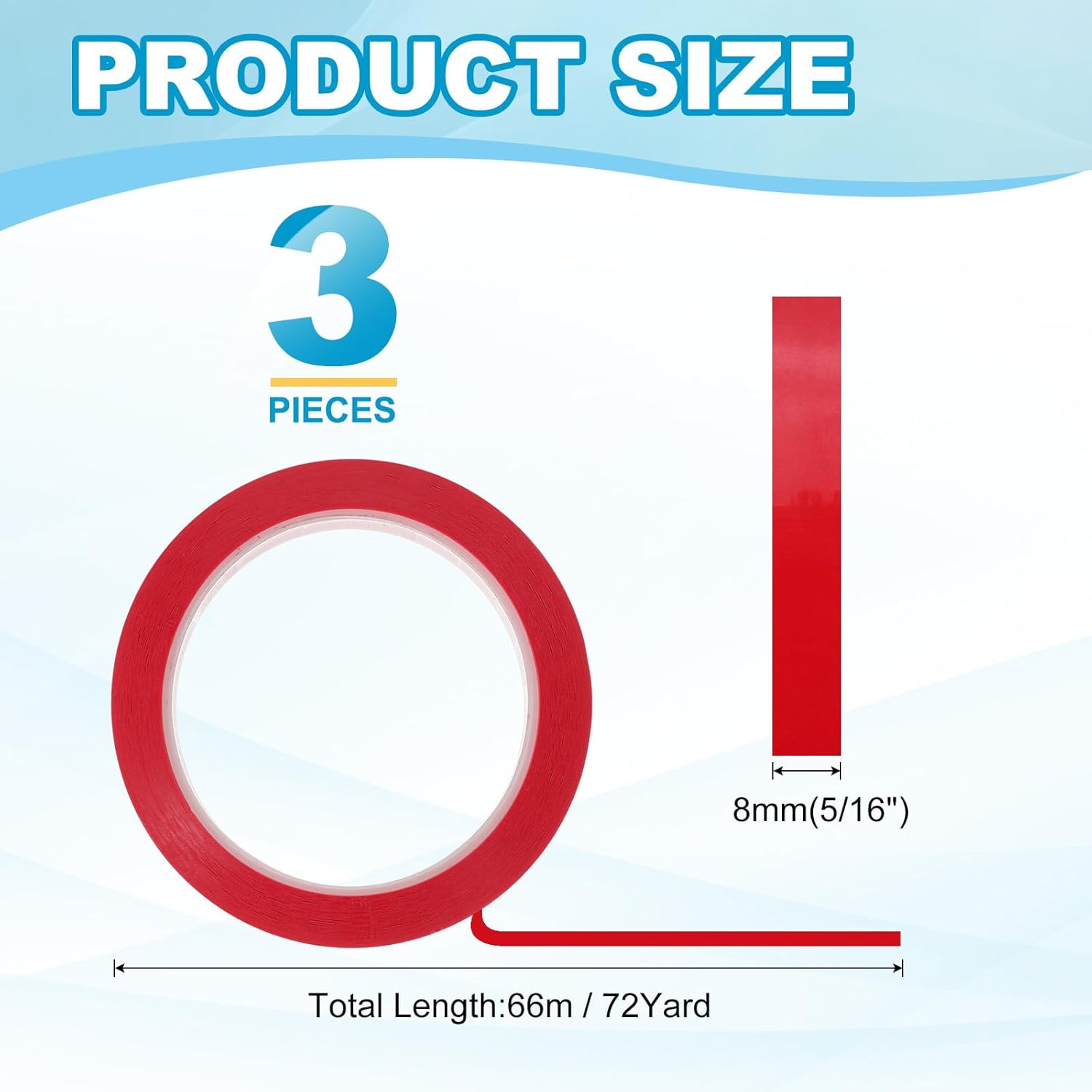 - This pinstripe tape provide here is in the size of: Width: 8mm(5/16"), Length: 66m(72 Yard); In the package of: 3 x Chart Line Tape