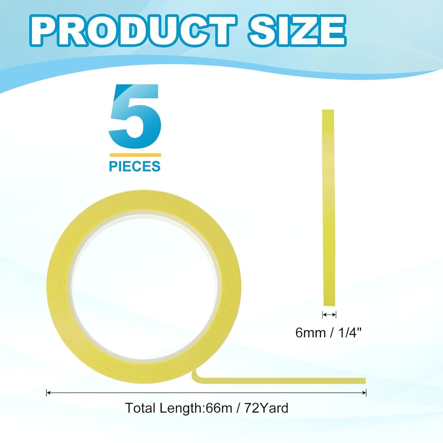 MECCANIXITY Whiteboard Tape 1/8" x 72 Yard Pinstripe Graphic Chart Line Grid Marking Tapes for Classroom Office Dry Erase Board Art, Light Yellow, Pack of 5
