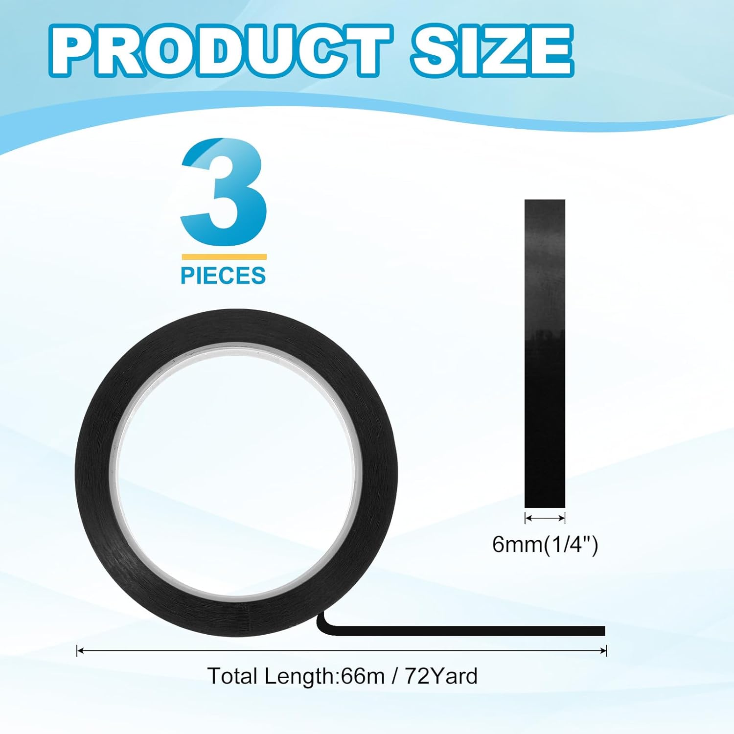 MECCANIXITY Whiteboard Tape 1/4" x 72 Yard Pinstripe Graphic Chart Line Grid Marking Tapes for Classroom Office Dry Erase Board Art, Black, Pack of 3