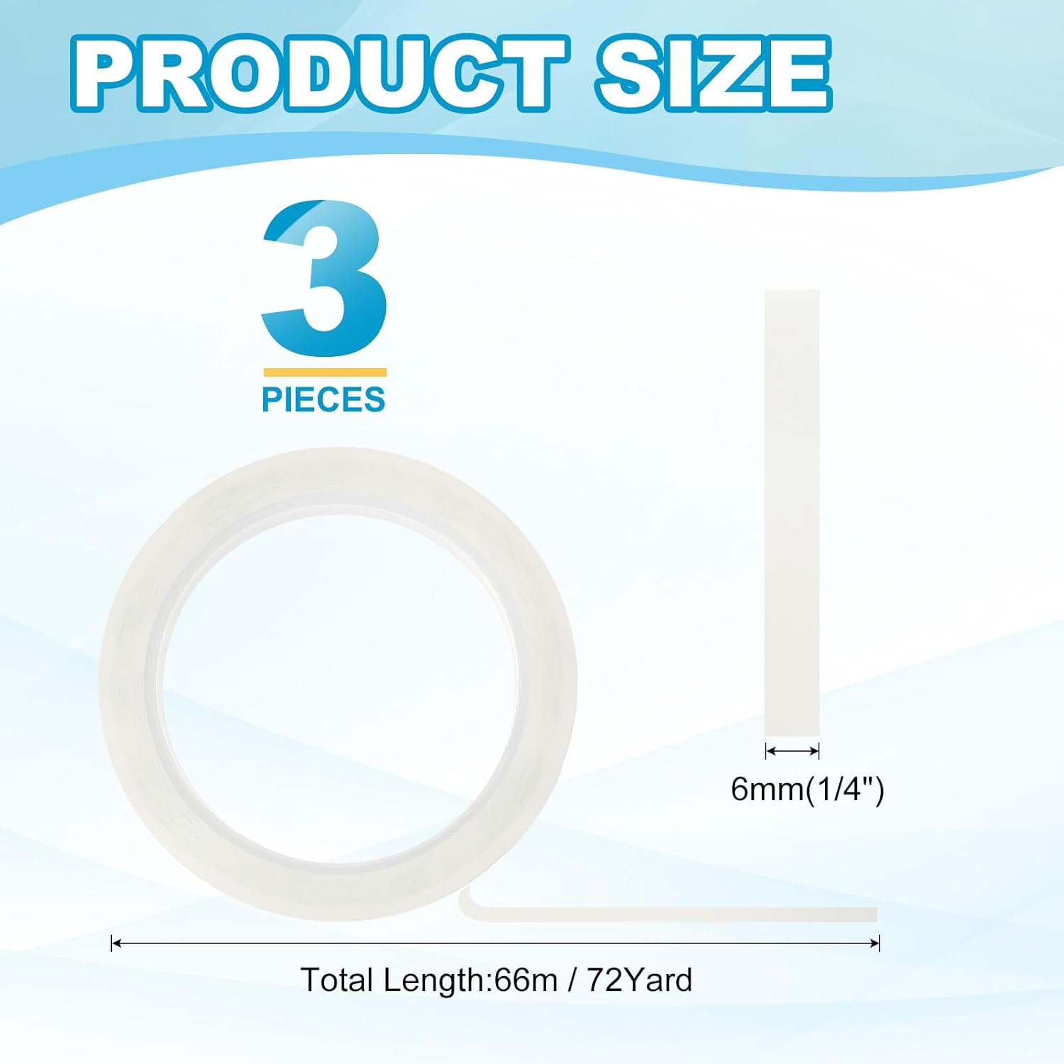 MECCANIXITY Whiteboard Tape 1/4" x 72 Yard Pinstripe Graphic Chart Line Grid Marking Tapes for Classroom Office Dry Erase Board Art, Clear, Pack of 3