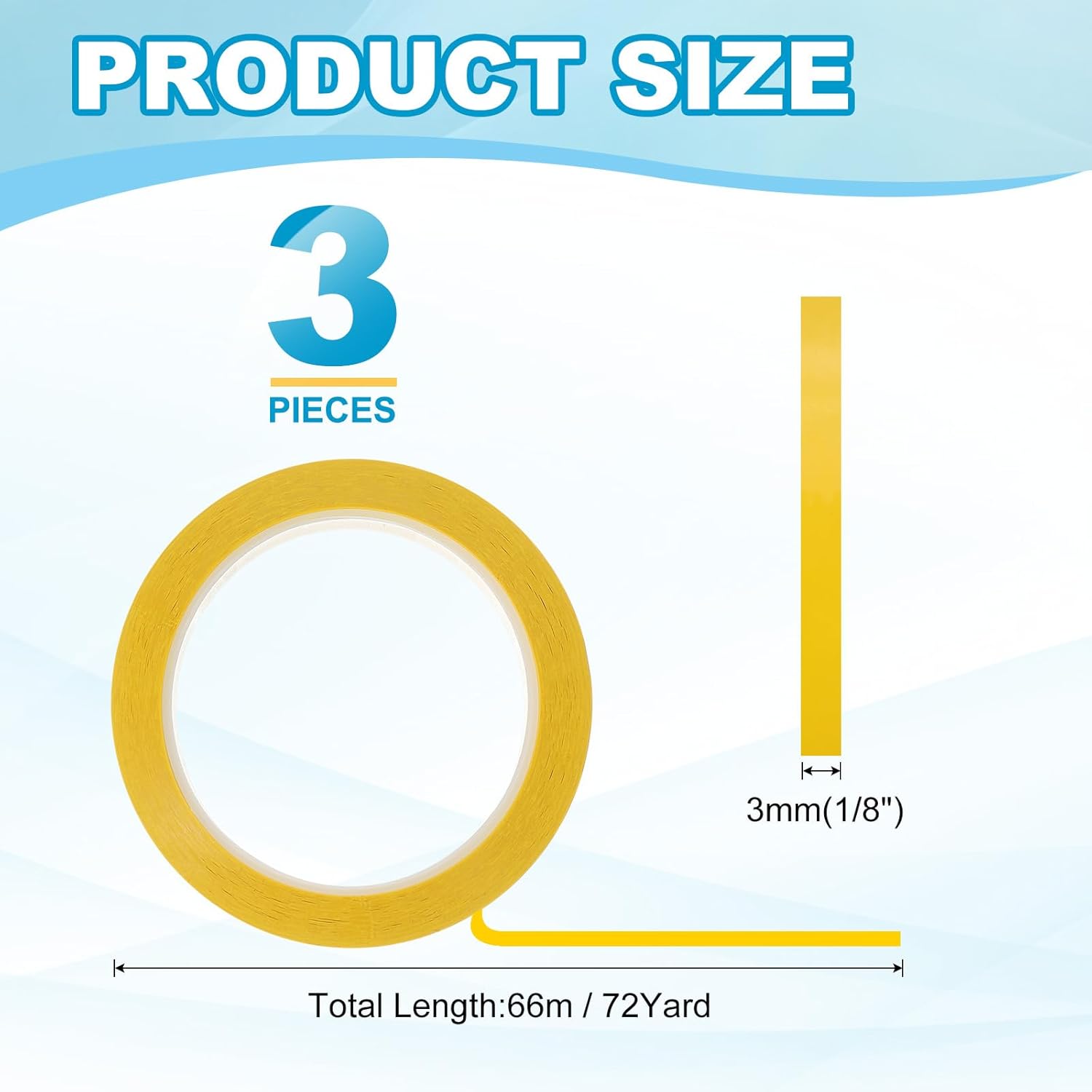 - This pinstripe tape provide here is in the size of: Width: 3mm(1/8"), Length: 66m(72 Yard); In the package of: 3 x Chart Line Tape