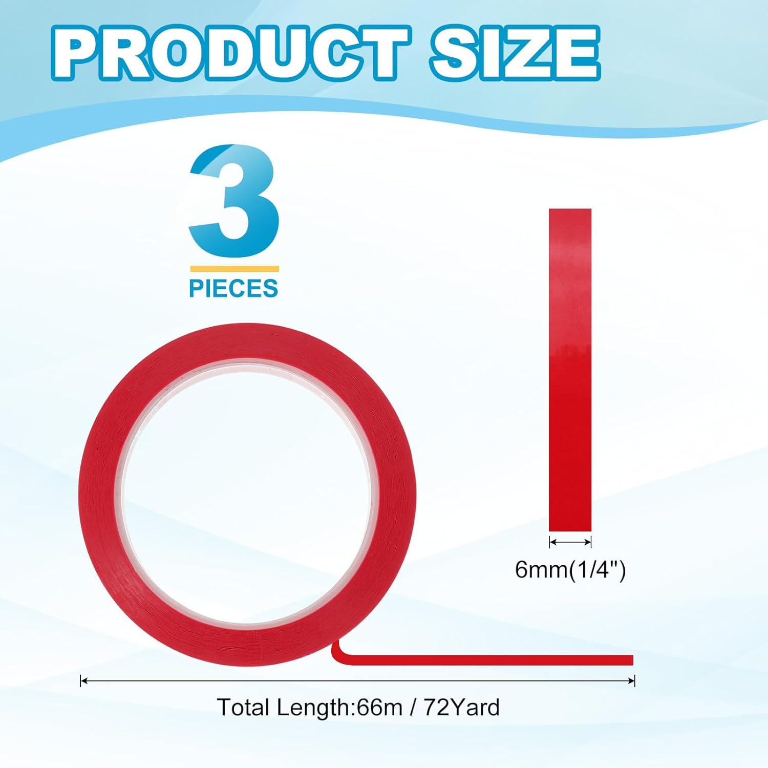 - This pinstripe tape provide here is in the size of: Width: 6mm(1/4"), Length: 66m(72 Yard); In the package of: 3 x Chart Line Tape