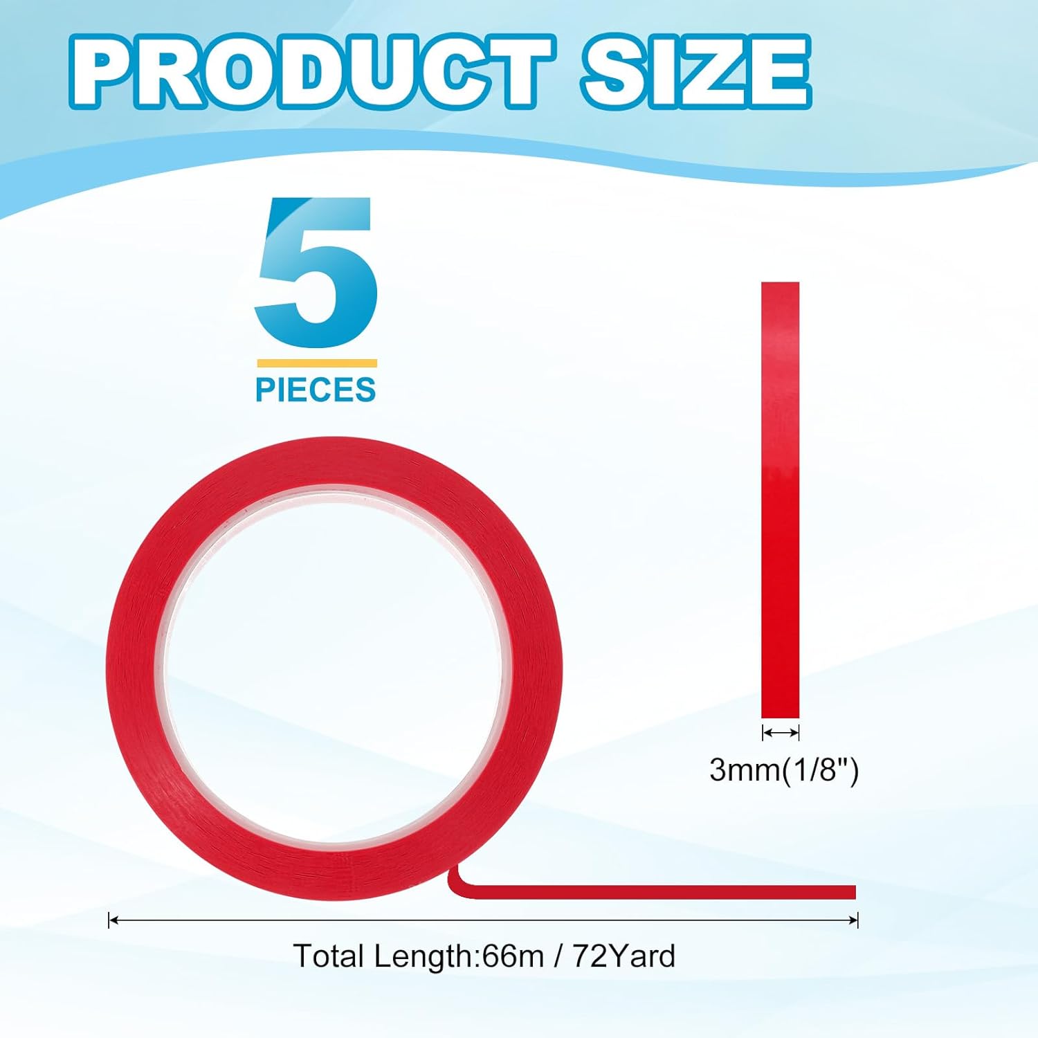 - This pinstripe tape provide here is in the size of: Width: 3mm(1/8"), Length: 66m(72 Yard); In the package of: 5 x Chart Line Tape