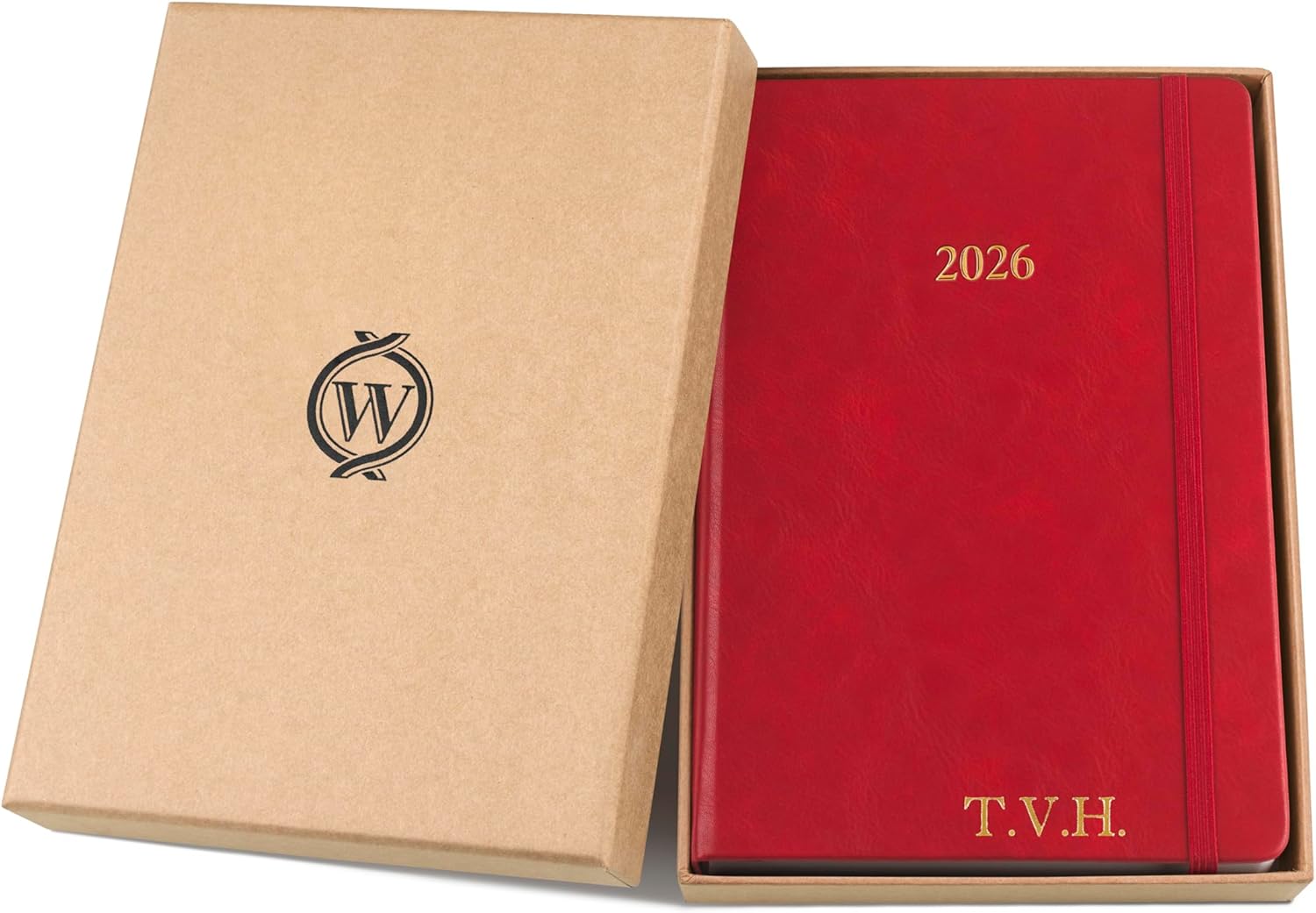 Wykeham's Executive 2026 Daily Journal Planner – US Public Holidays & Format – Customization Available (Personalized Crimson, 8.5”×5.5”)