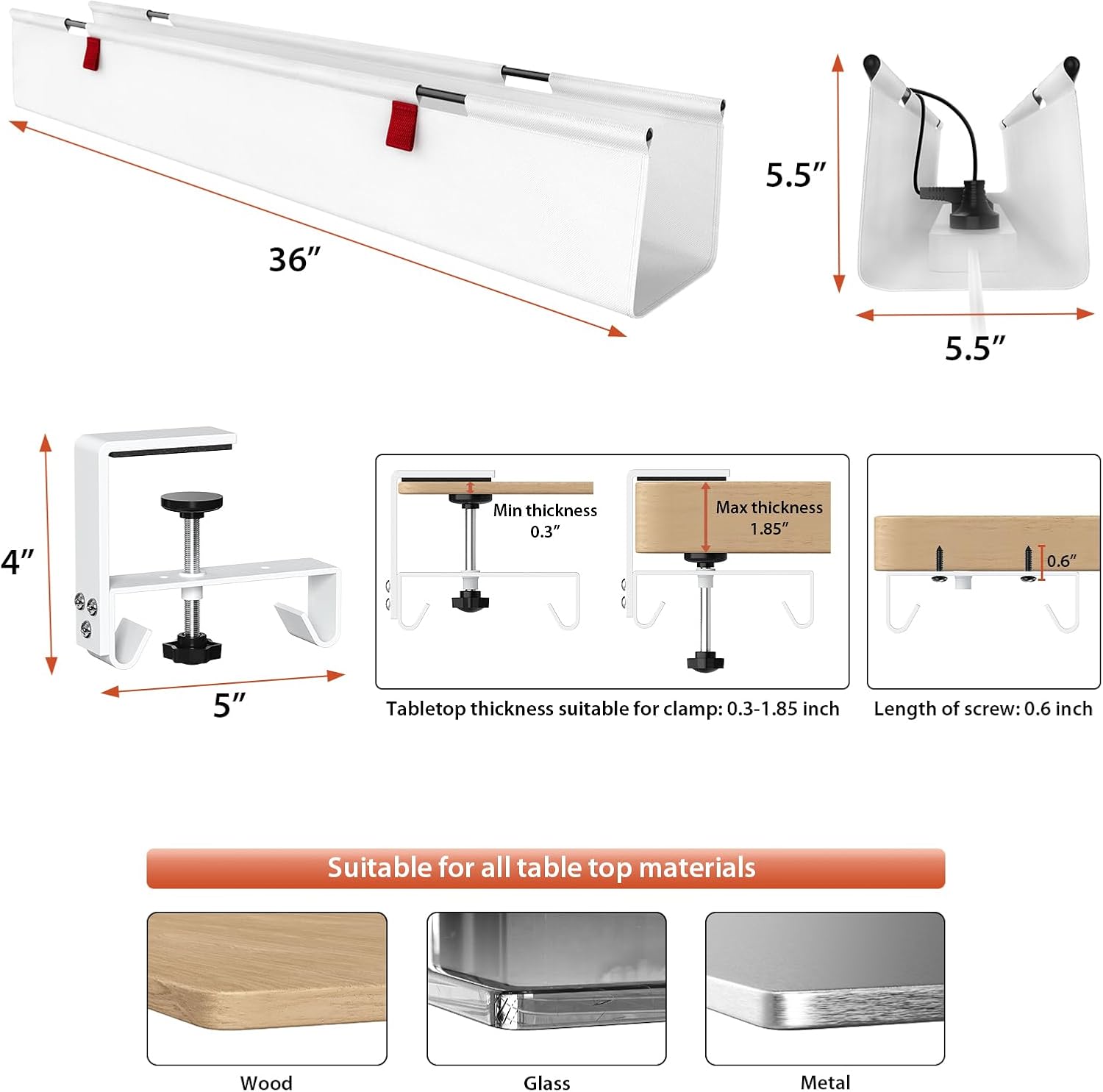 - Large Capacity and Durable. The cable tray size 36"L x 5.5"W x 5.5"H, it fits all size adapters and sockets, holds and hides everything under your table. It is ideal cable management under desk.