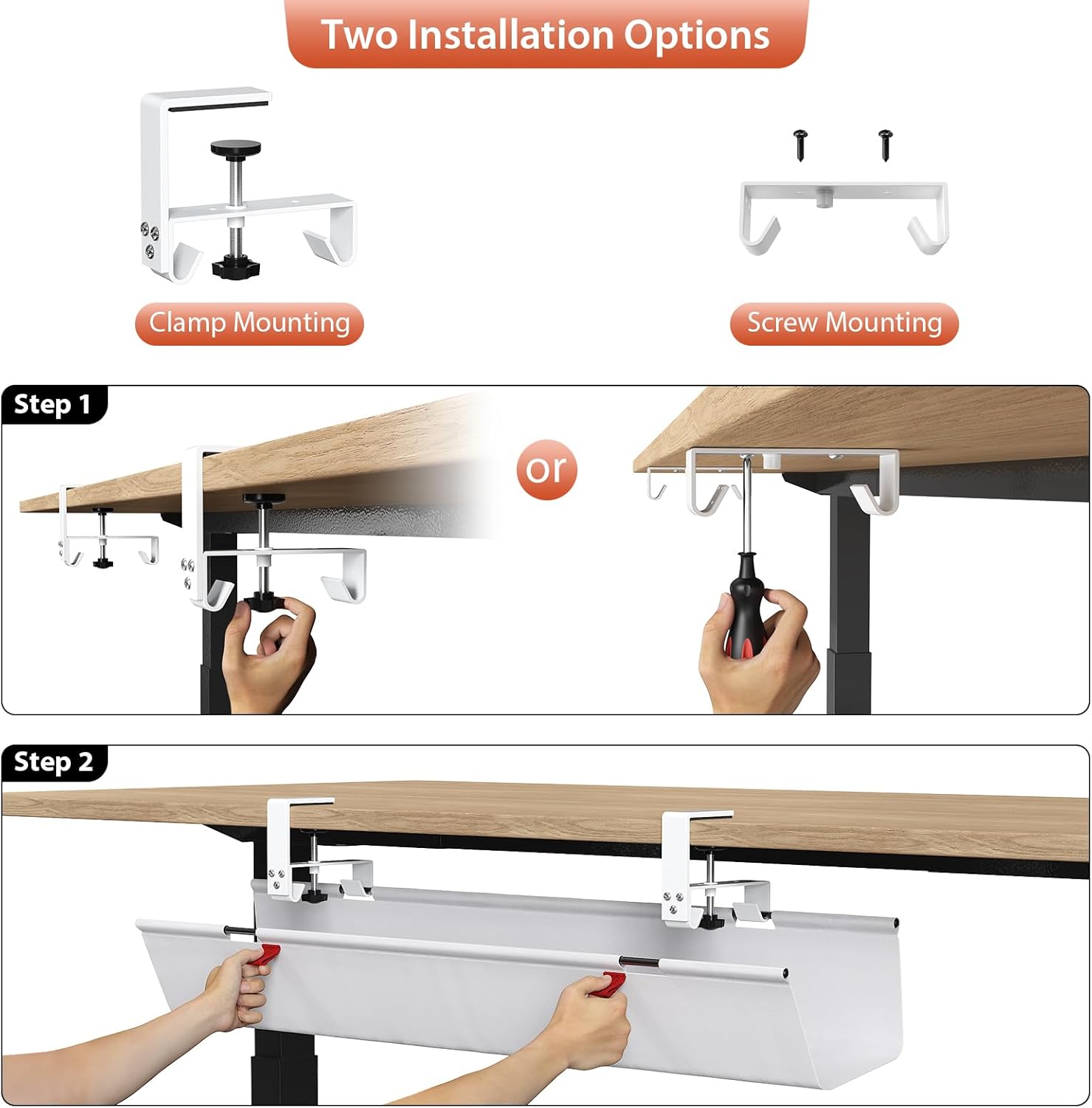 Univivi No Drill Under Desk Cable Management Tray, 36" Cord Organizer for Table, Clamp/Screw Mount Desk Cable Management, Premium Fabric Cable Management Tray for Office, Home