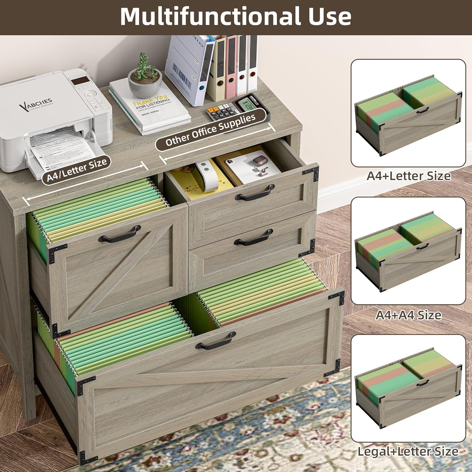 - 🖨️【Multi-functional Storage】This lateral file cabinet can be used not only for hanging files to keep your documents organized. It can also be used as a dresser or large nightstand for household items.The large 33.27"W x 15.75"D desktop is perfect for printers, scanners and more.