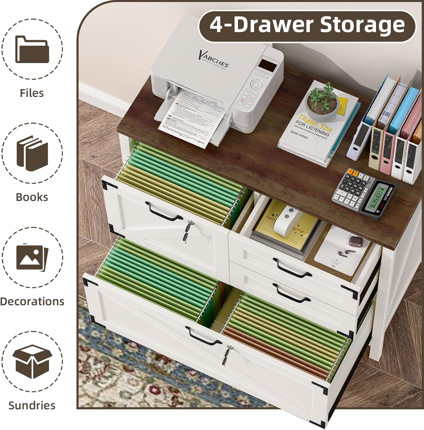 Wood Lateral File Cabinet with 4-Drawer for Hanging Files Letter/A4/Legal Size, Large Farmhouse Filing Cabinets with Lock for Home Office, Printer Stand with Office Cabinet, Office Furniture