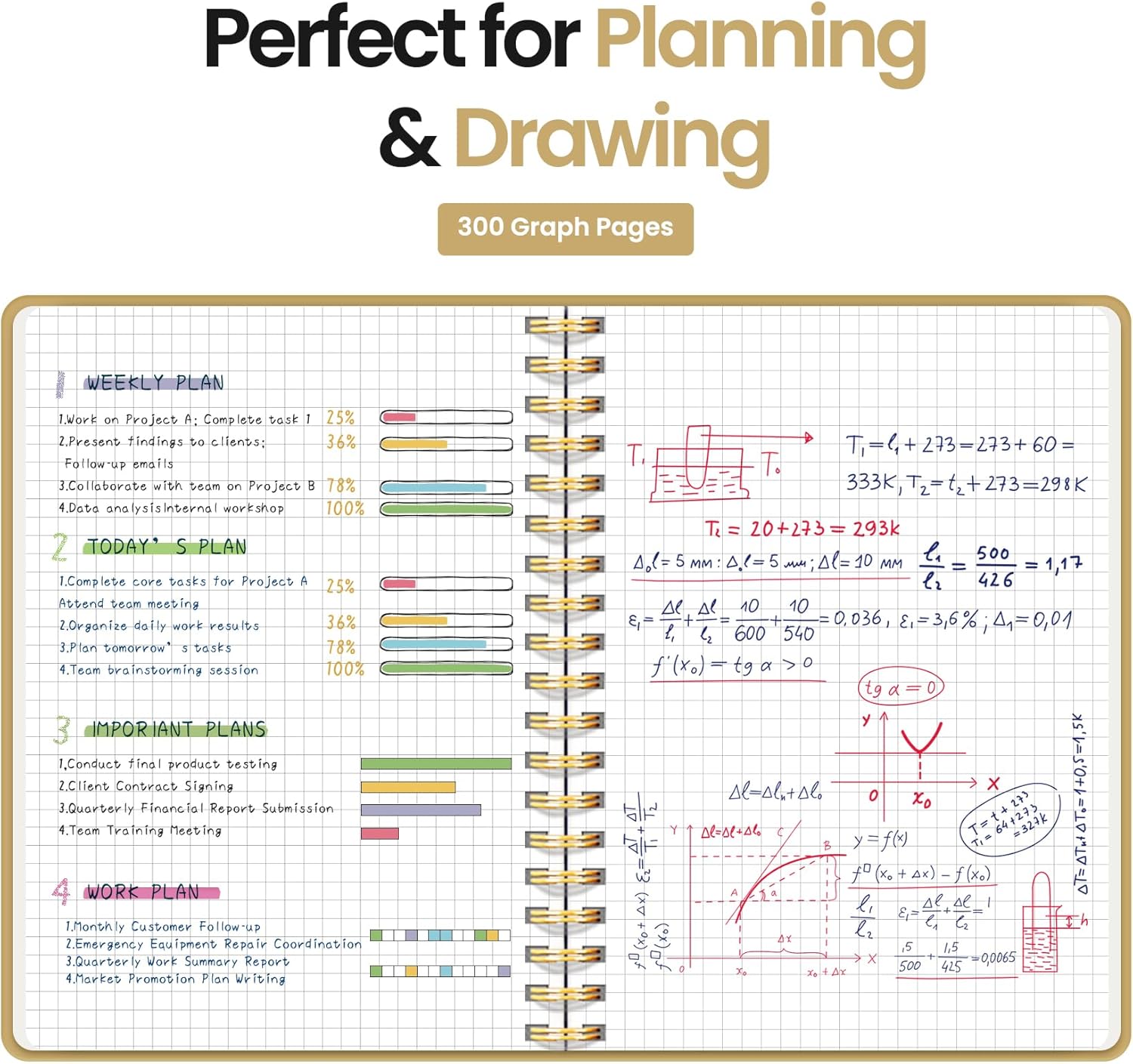 - 300 Pages Graph Journal: Our Graph Spiral Journal Notebook offers ample space for organized note-taking and quick referencing. An interior pocket keeps loose papers and extras in place, while the elastic band closure keeps your notebook neatly shut when not in use.