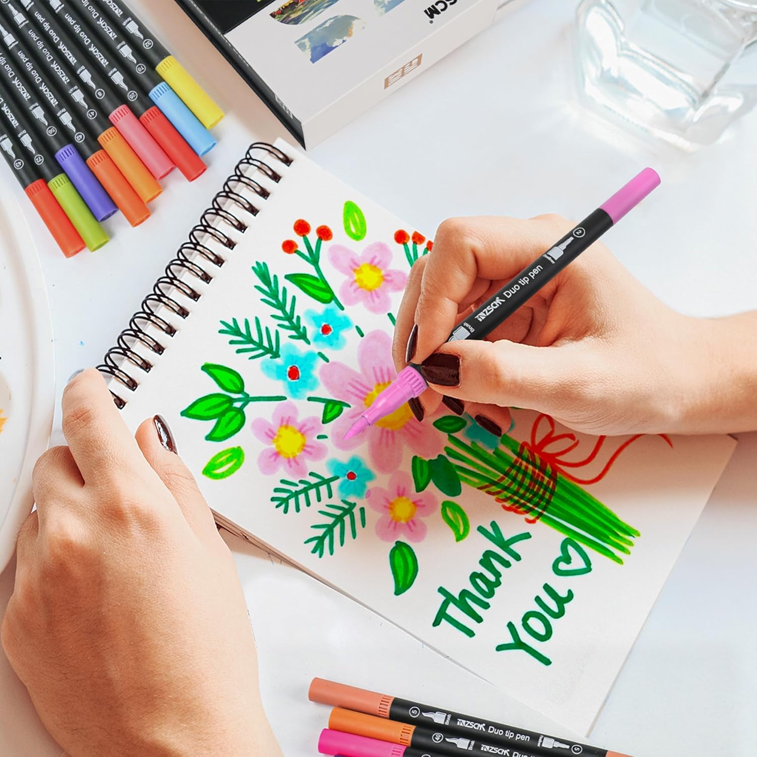 - STAY NICE AND ORGANIZED GREAT GIFT: Our Duo tip marker pens organized in the included container! Wonderful Gift for Birthday, Graduation, Halloween, Christmas, Thanksgiving day or anyone who loves drawing, painting, sketching, writing, journaling, brush lettering, crafting, doodling, watercolor painting, illustrations.