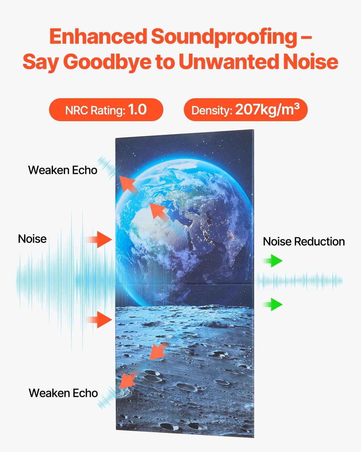VEVOR 6 Pack Art Acoustic Panels, 70.87 x 47.24 x 0.4 inch Soundproof Wall Tiles, Self Adhesive Decorative Sound Dampening Absorbing Boards for Home, Office, Studio, Gaming Room,Theater, Earth