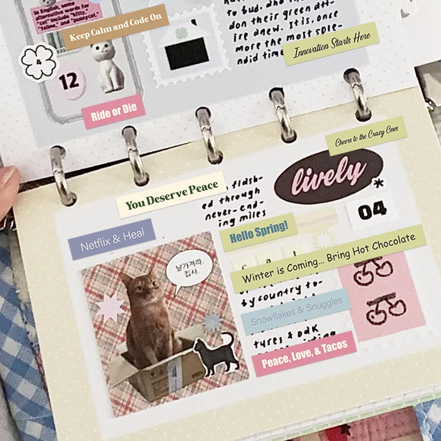 - Diverse Design: Including 6 color tones, This inspirational sticker pad contains a large amount of motivational phrases, words, and sayings with different fonts and sizes, perfect for adding some inspiration to your scrapbook pages. inspirational stickers or colorful uplifting messages to keep you motivated throughout the day