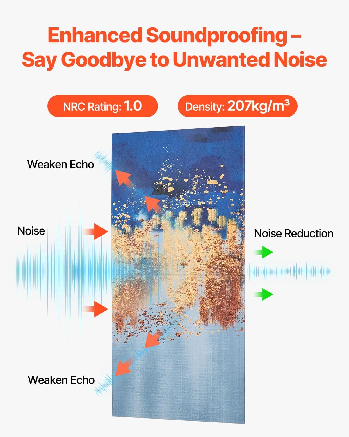 - Efficient Sound Absorption: Made with high-quality polyester fiber, our large-sized, high-density panels cover more area. With an NRC value of up to 1, they effectively absorb mid- to high-frequency noise, reduce echoes and reverberation, creating a quiet and comfortable environment for you