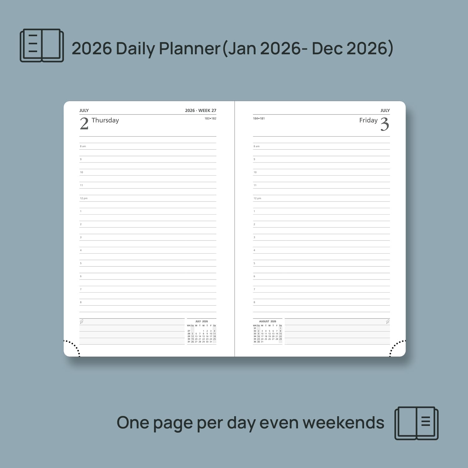 - ONE PAGE PER DAY, INCLUDING WEEKENDS - This daily planner offers 365 daily pages of year 2026, each with ample space for hourly scheduling. It keeps your busy daily routines organized and manageable.