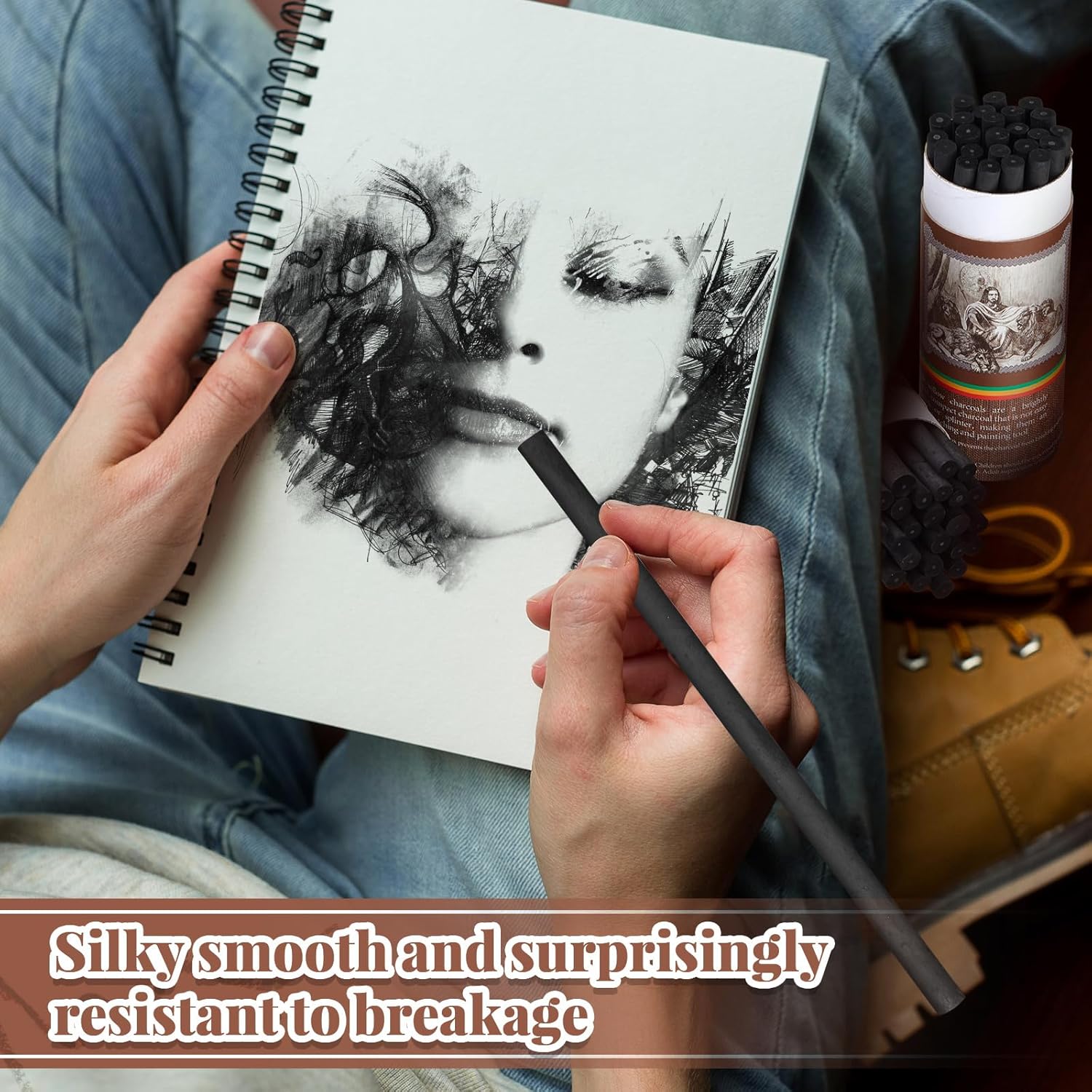 - Sturdy and Reliable Willow Charcoal: we have improved the box and still provide the smooth and quality willow charcoal sticks; The sketch tools are made of willow charcoal, you can experience the blend of endurance and convenience, ensuring lasting usage, it slides smoothly and has smooth lines when applied; Willow is darker and more forgiving than vine, which can produce a range of tones, and willow breaks less than vine charcoal