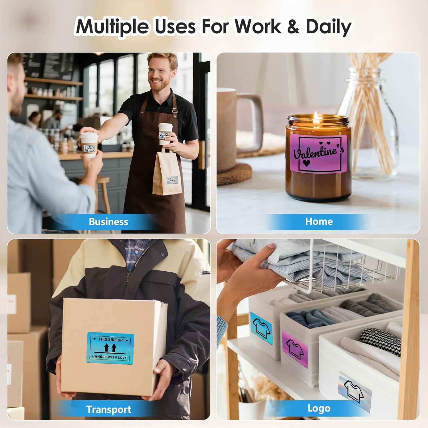 - Fit for Phomemo/MUNBYN Label Printer: This colorful square holographic label paper is suitable for Phomemo 241BT,for MUNBYN 130B /RW402B,for Omezizy D450BT,POLONO,JADENS,IDRPT.Simple installation, just put the paper roll into the printer in the right direction, then adjust the slot according to the label size to fix the label paper,turn on the printer will automatically correct the position of the label, and then connect with APP to print.