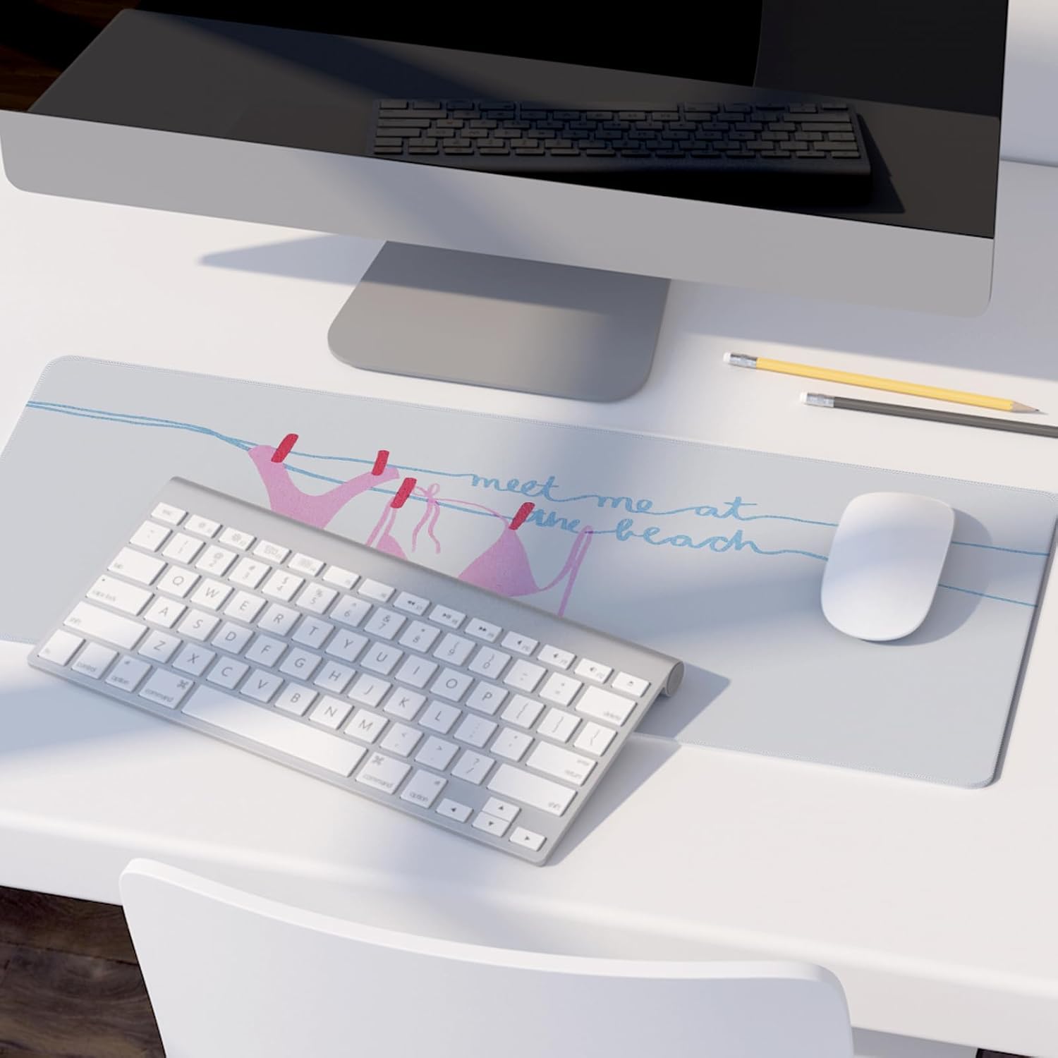 Pink Sexy Bikini Mouse Pad,Pink Girly Ocean Beach Themed Mouse Pads,XL Large Coastal Ocean Desk Mat,Meet Me at The Beach,Preppy Girly Summer Desktop Decor Art,Gifts for Girls,31.5x11.8 Inch
