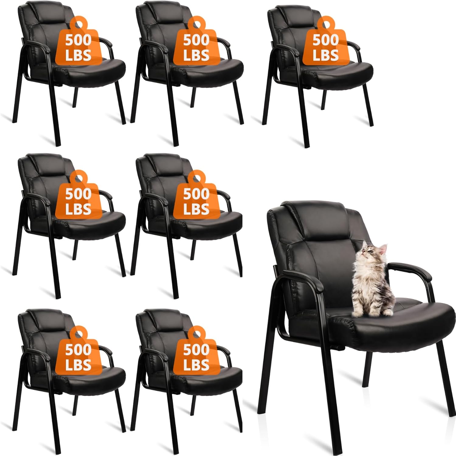 CLATINA Big & Tall 500 lb. Guest Chair, Leather Reception Chairs with Padded Arm Rest for Waiting Room Office Home and Meeting Conference-Black, 8 Pack