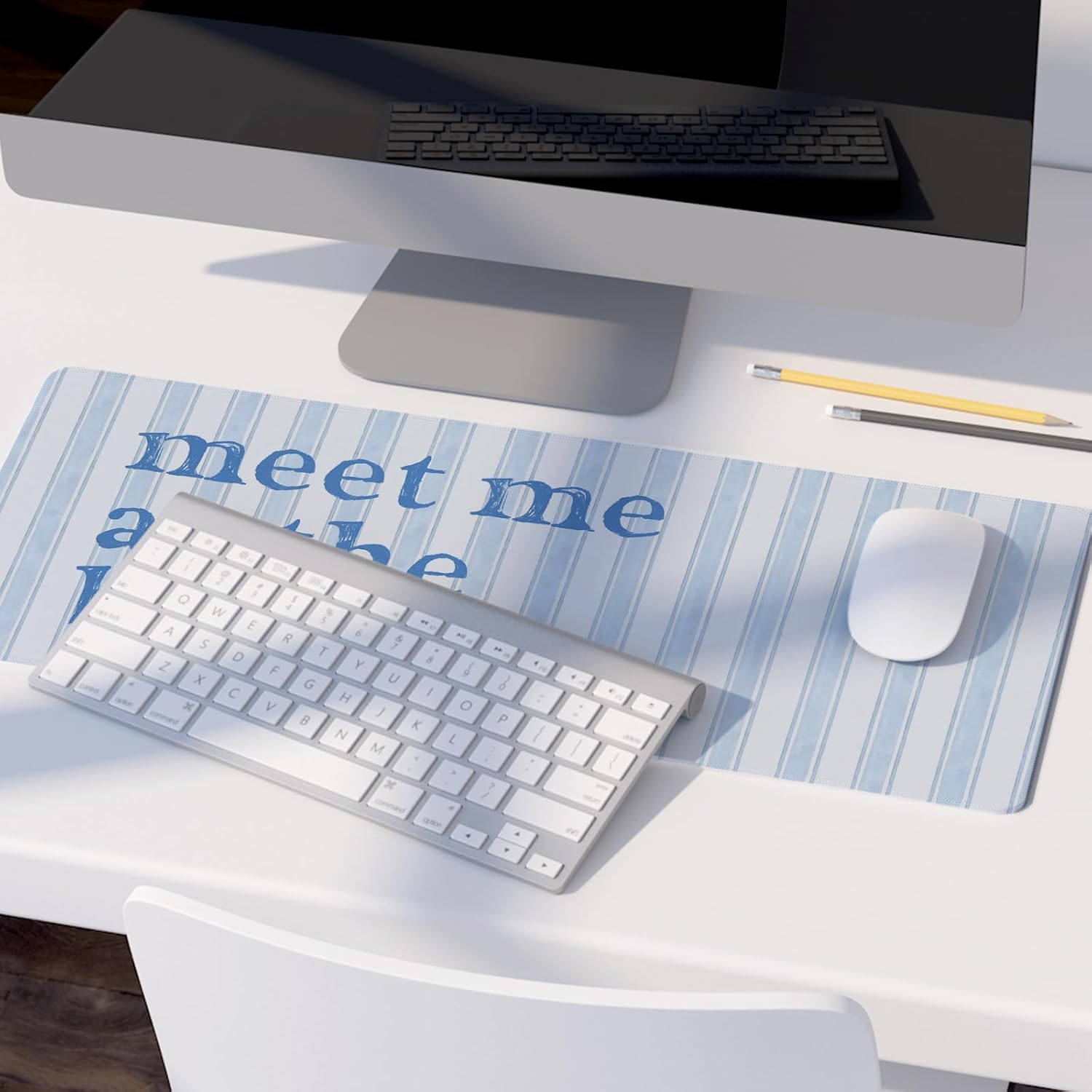 Blue Ocean Beach Room Mouse Pad,Light Blue Coastal Room Decor Mouse Pad,XL Large Ocean Desk Mat,Girly Summer Beachy Gaming Pads,Meet Me at The Beach Desktop Decor Art,31.5x11.8 Inch