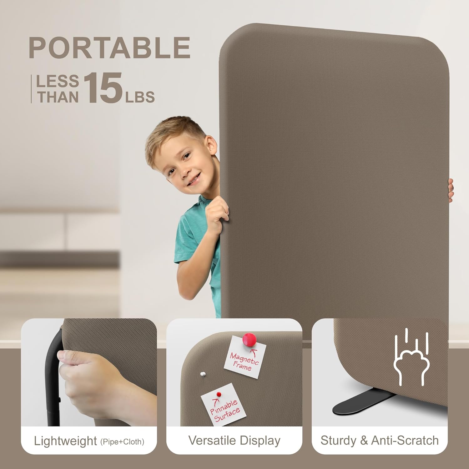- PORTABLE: The standing divider weighs less than 15 lbs and is easy to move and reposition as needed. Ideal for creating private spaces in bedrooms, living rooms, offices, classrooms, healthcare, retail, etc.