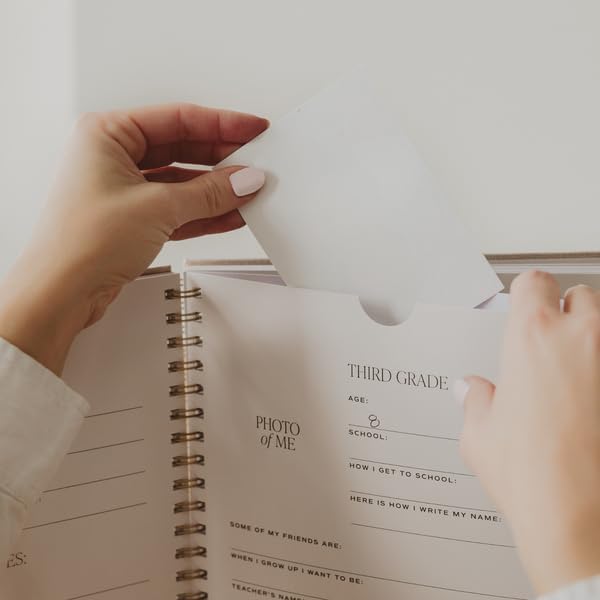 - SCHOOL YEAR MEMORIES - Add photos and other treasures to this memory book that follows your children through the first day of preschool up until 12th-grade graduation.