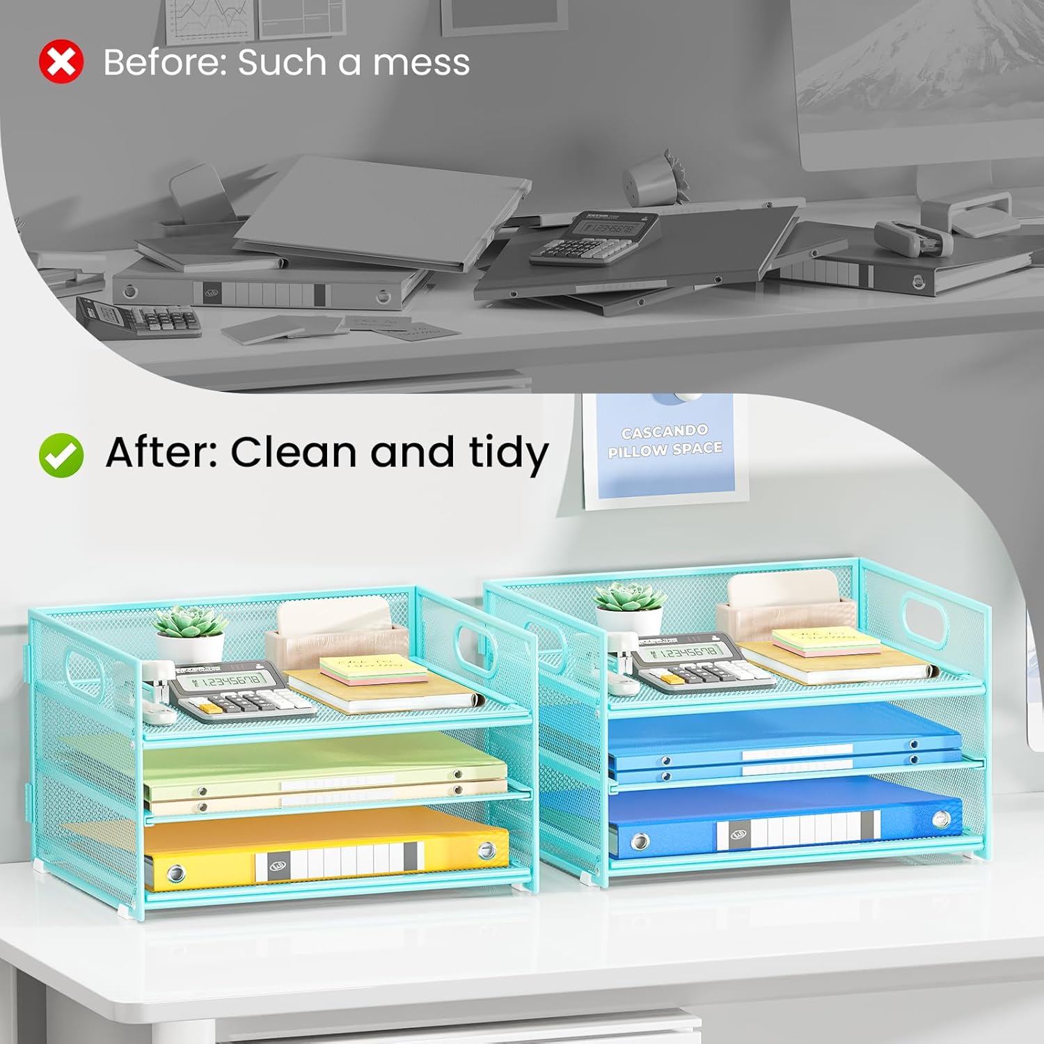 - Paper Organizer Function and Usage: The mesh desktop file organizer can hold various items including paper, folders, books, bills, notebooks, etc. The open design enables quick identification and access to contents, helping to declutter and organize the desk