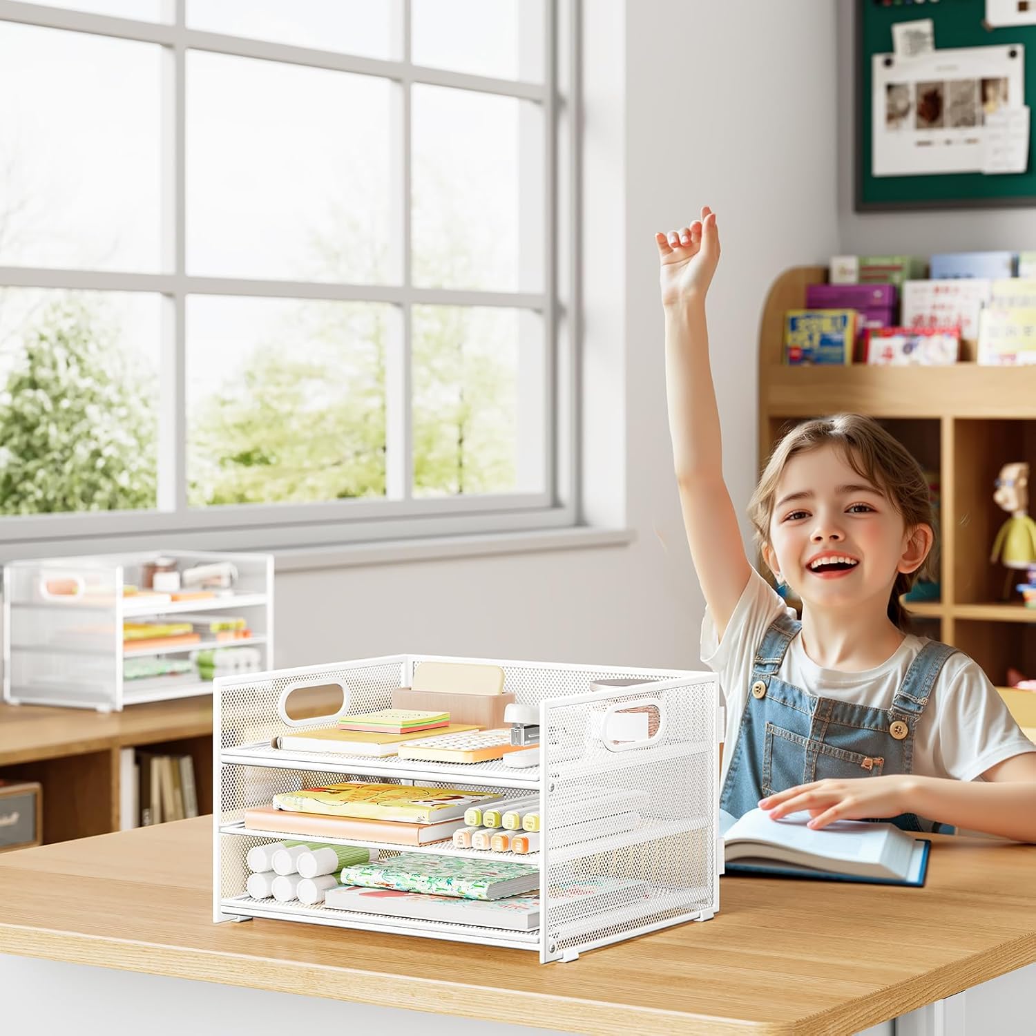 - Paper Organizer Function and Usage: The mesh desktop file organizer can hold various items including paper, folders, books, bills, notebooks, etc. The open design enables quick identification and access to contents, helping to declutter and organize the desk
