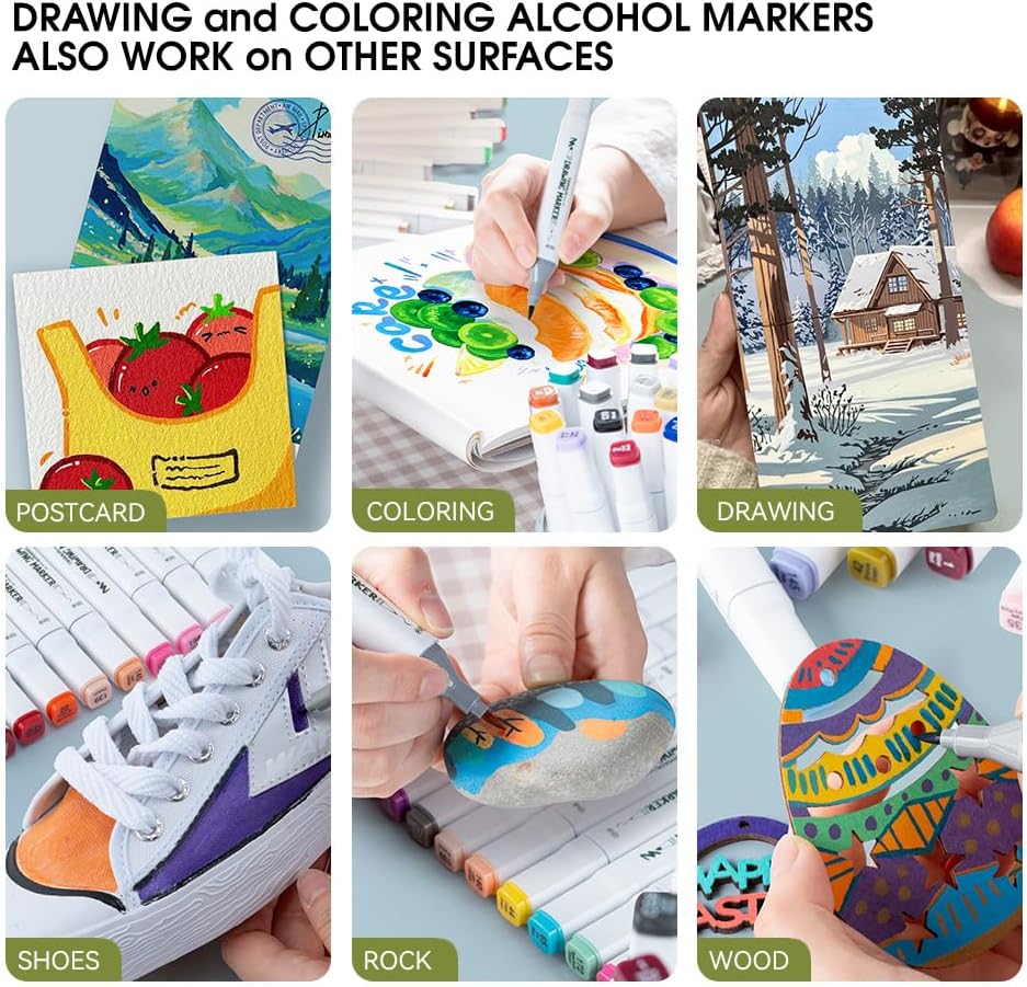 - 48 rich and saturated colors of alcohol markers are carefully selected colors by fine artists. They offer a broad color gamut, ranging from basic hues to intricate shades, providing artists with ample choices, perfect for drawing and coloring for both artists and hobbyists.