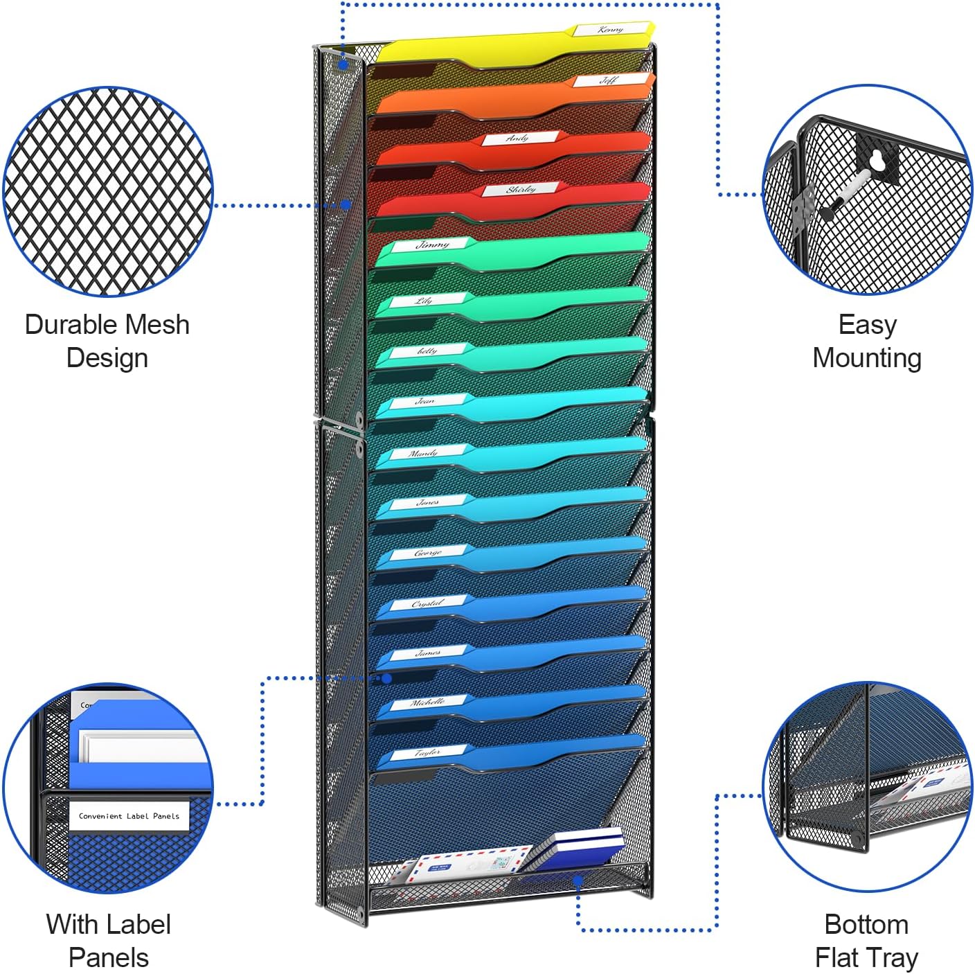 - 16 Tier Wall Pockets: Comes with mounting screws that can be easily mounted on wall and arched design that allows for easy access to contents in the files you store.