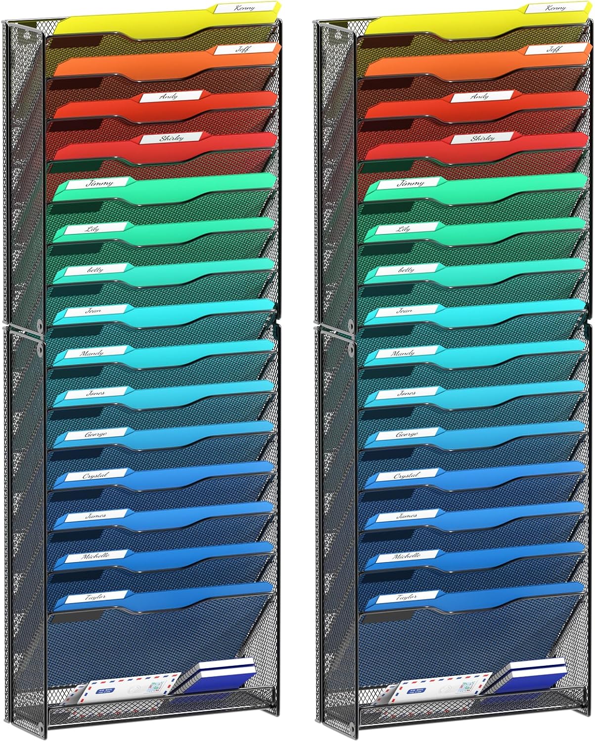 samstar 2 Pack 16 Tier Wall File Organizer Hanging Wall File Holder Wall Mount Paper Folder Organizer, Magazine Rack, Pack of 2